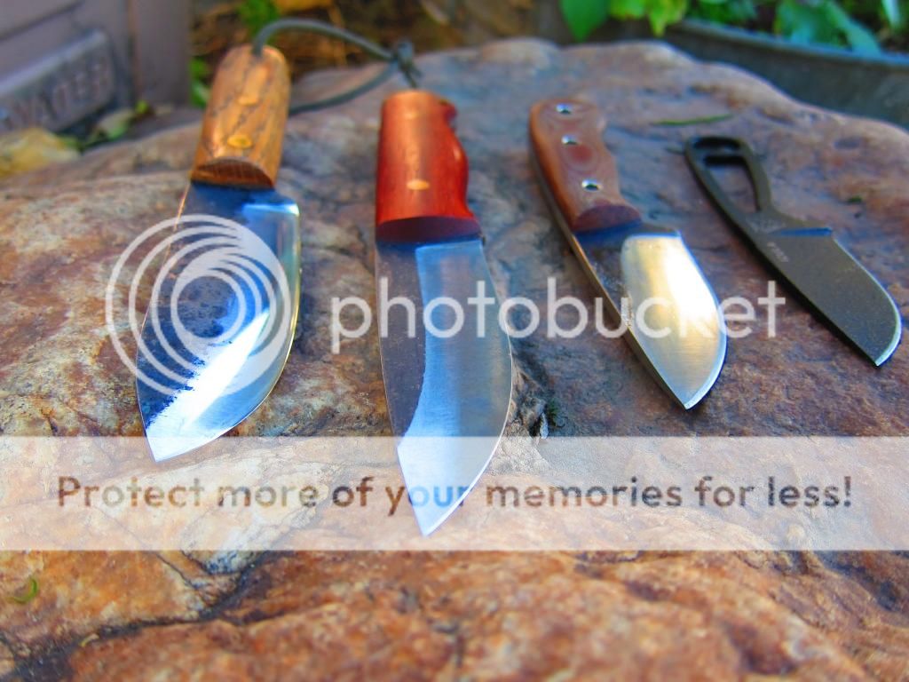 Ray Laconico Woods knife: Second from top in first pic. 1/8" 1095 with Padauk scales. 8 15/16" OA. 4" blade. Carried and barely used. $150 Shipped sold
