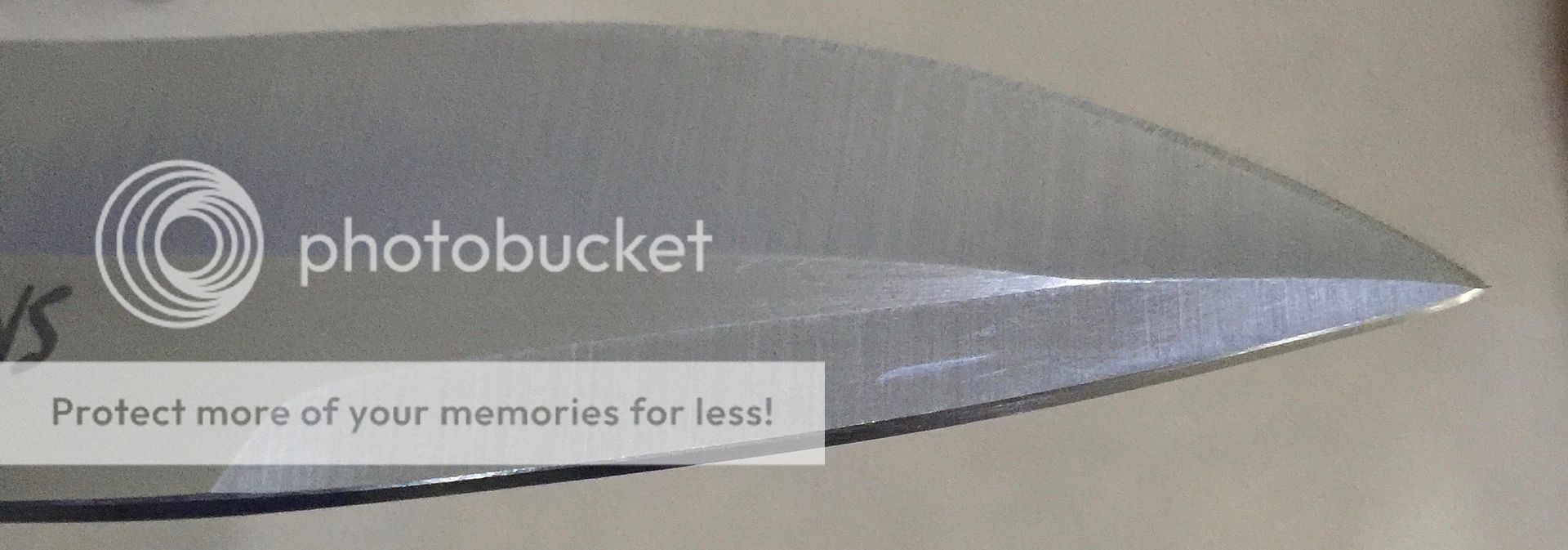 There's a couple minor scratches, likely caused by the Kydex sheath. I've tried to capture them in the photo but they are light and very hard to capture in a photo.