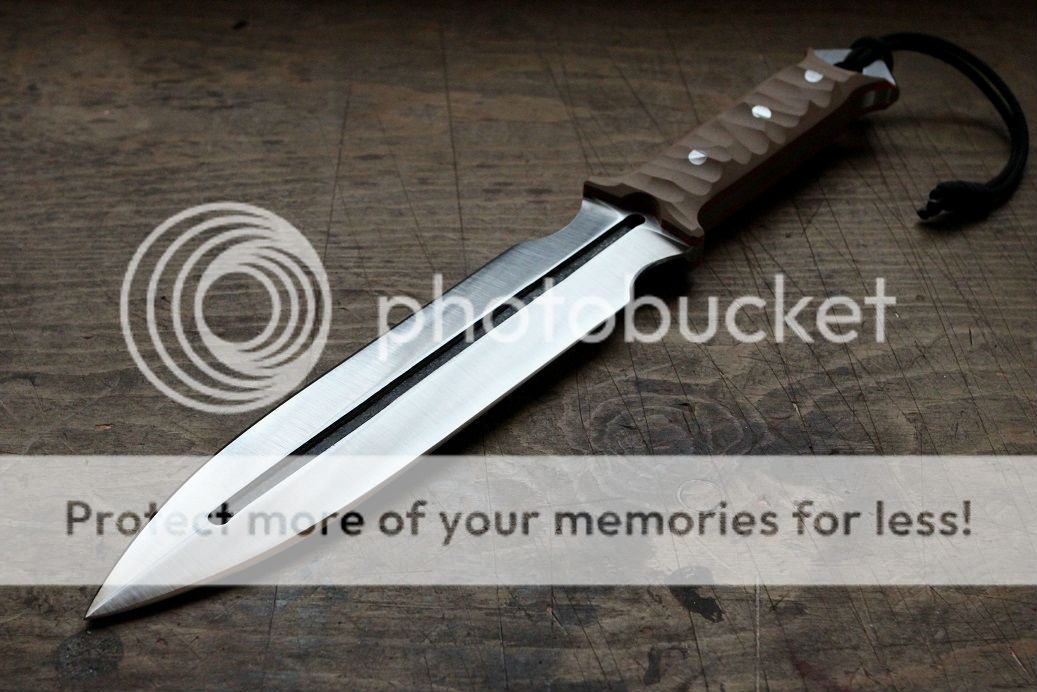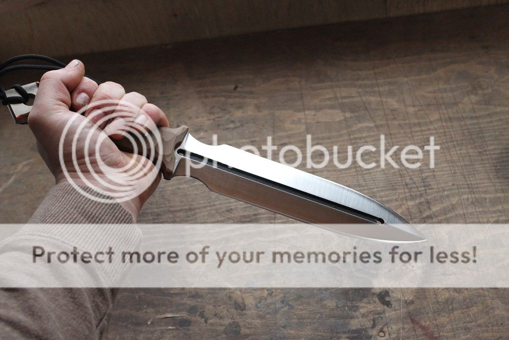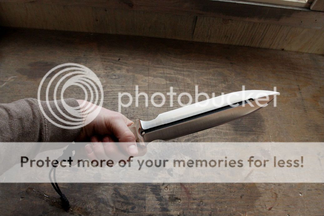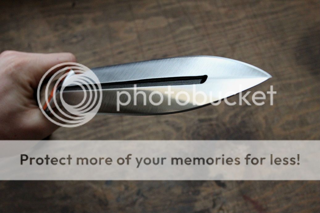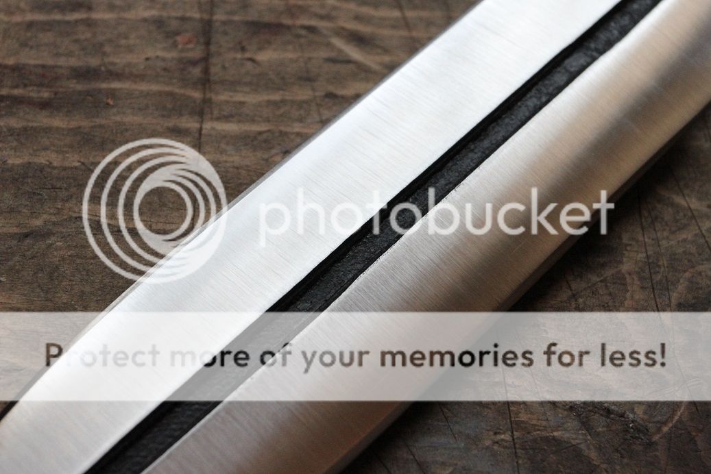 Its made of .25" W2 steel stock with a ver nice .25" fuller running down the blade. all four bevels are finished to 400 grit satin with a mirror stropped edge.