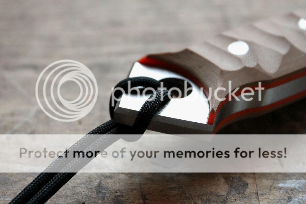 The butt or pommel of the knife sports a large lanyard hole with quite a pronounced glass breaker / skull crusher.