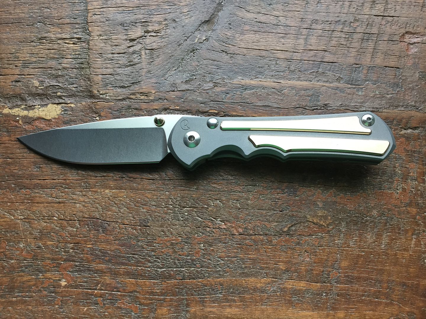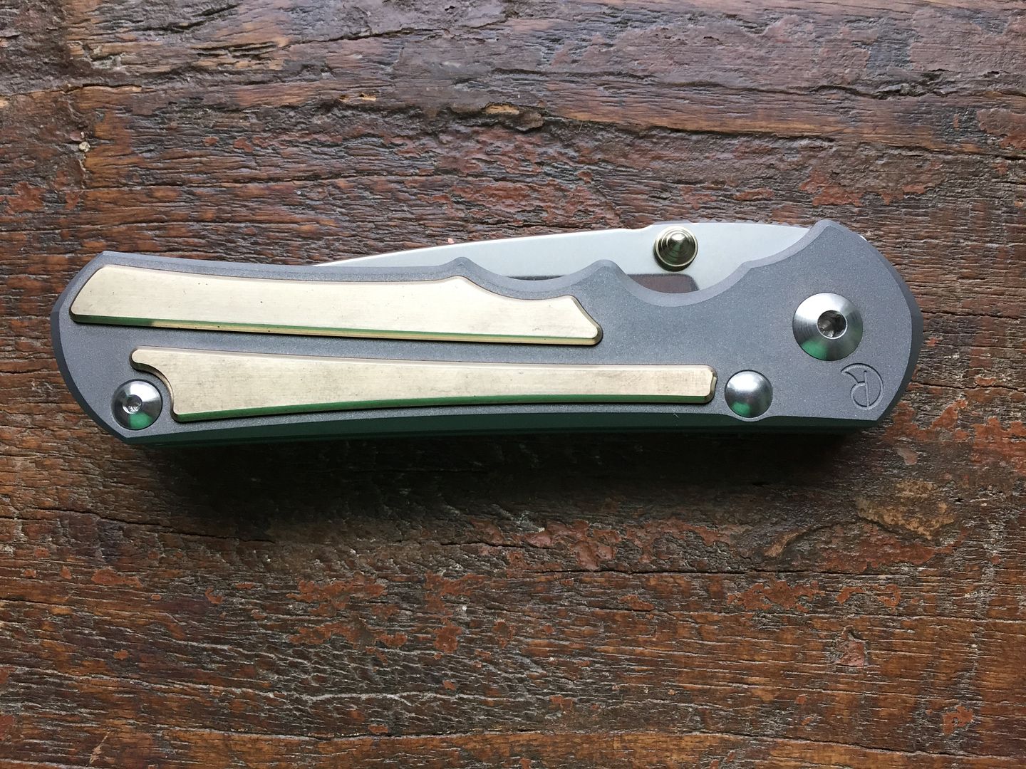 I untied the lanyard and put it back in the box, where all of the accessories and cards are untouched. This knife includes the usual goodies and a specific "limited edition" card. The inlays are starting to develop a touch of patina, but that is to be expected. There is a small darker spot near the lock bar cutout, I think it is from the grease but I wanted to make sure and disclose it. Everything else is perfect, this knife has a terrific firm detent and the lockup you would expect from a CRK. In case you were wondering, this knife does have the groove in the lockup that has since been removed:thumbup: