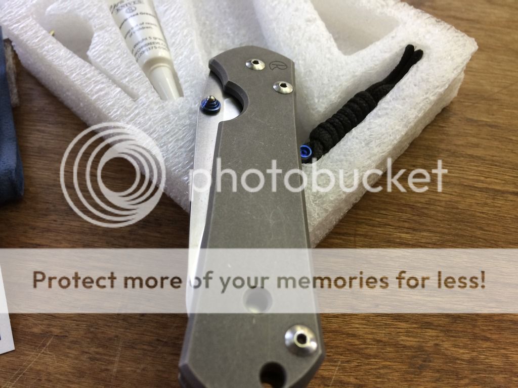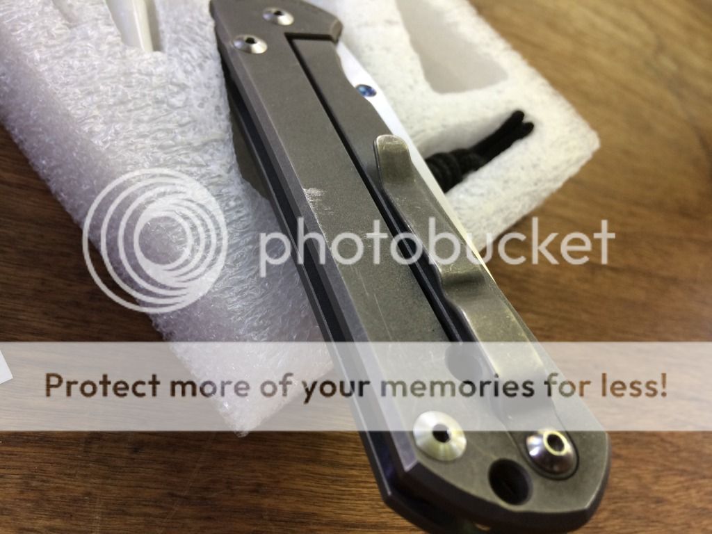 This knife has been edc'd and used but definitely not abused. It has snail trails and marks all over the Ti. I tried to capture this on the photos, but it's always extremely difficult to do so. At least for me.