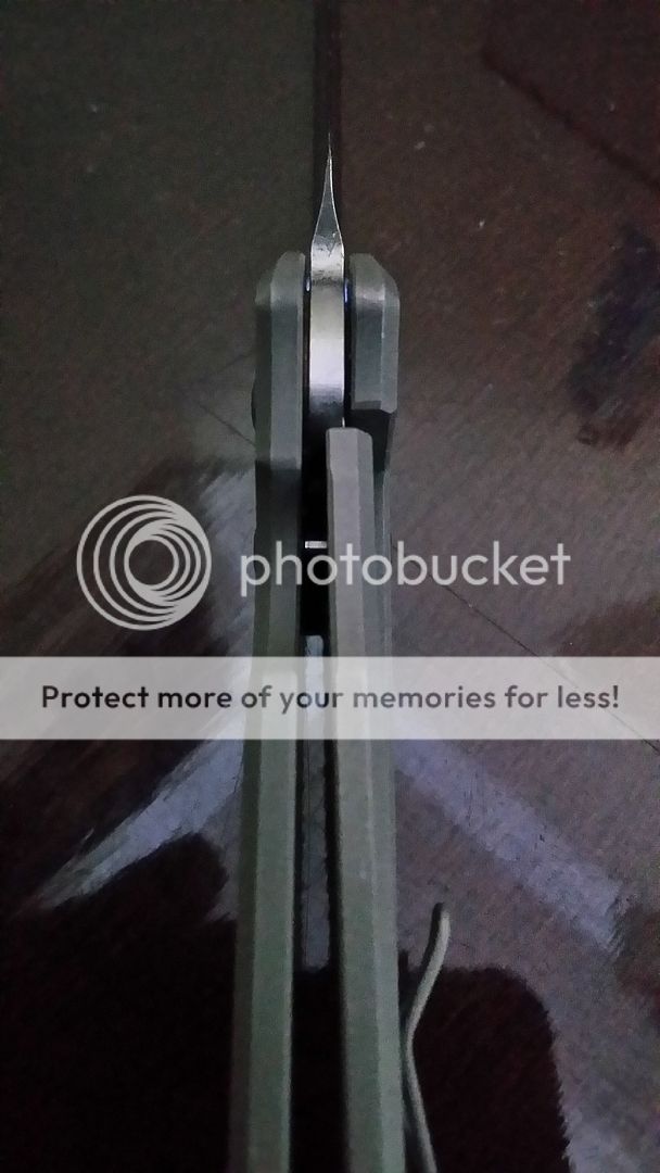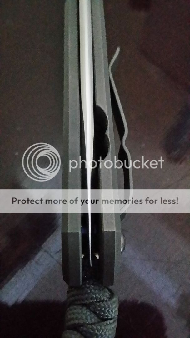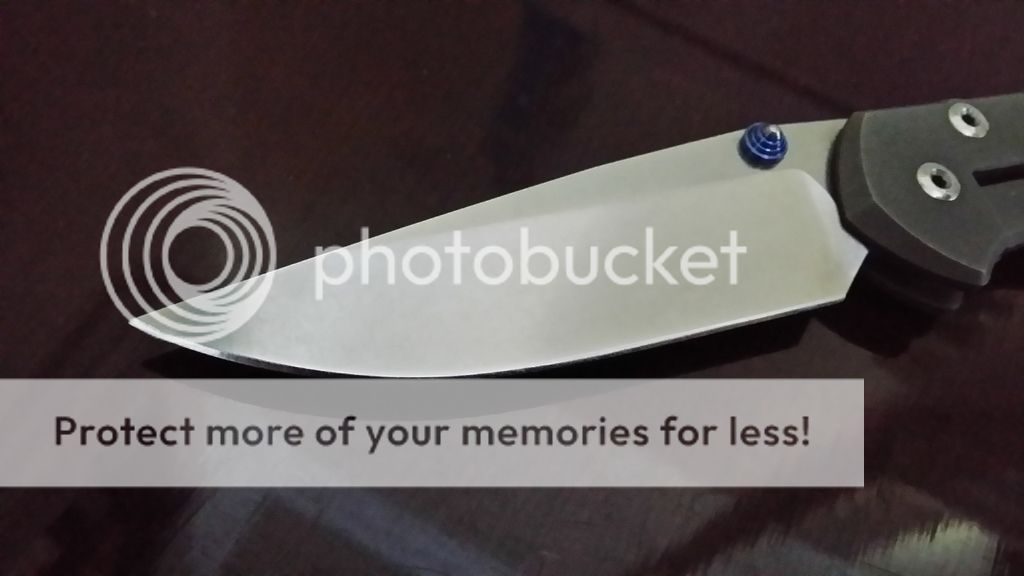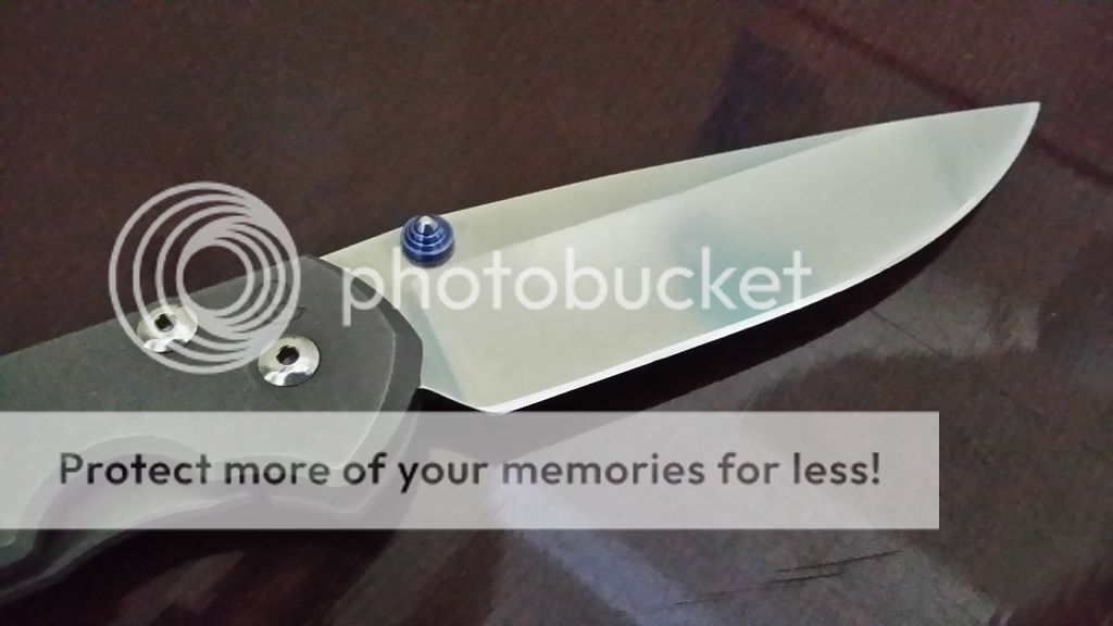 snail trails on clip and handles. Sharp edge, solid lock up and centered blade.