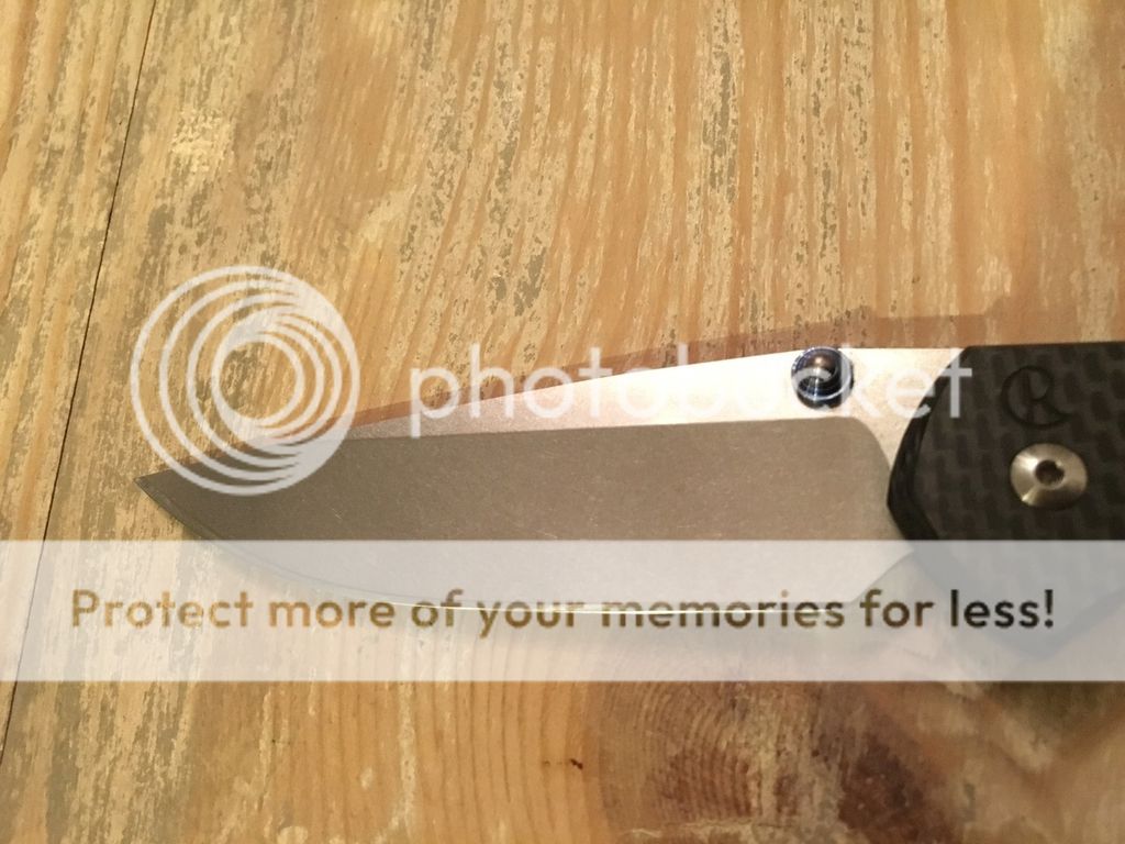 Notes: Bought used on exchange. Has a couple of marks on the lockside. Blade looks clean and is centered. Smooth action. Solid lock-up at around 60%. Includes leather pouch (apparently carried by previous owner). Birthday - March 5, 2015.