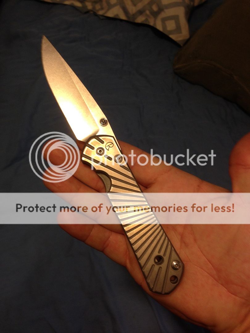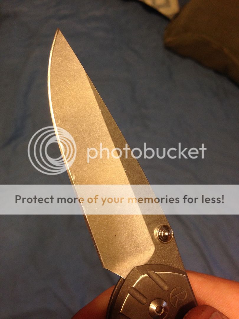 Has been carried, used, and sharpened (edge pro- comes very sharp). Some very minor scratches on the blade only visible in certain angles. (See pics) Comes with everything from factory. Super smooth, centered, and solid in all directions. Has an early lock up for a sebenza at a little under 50%.