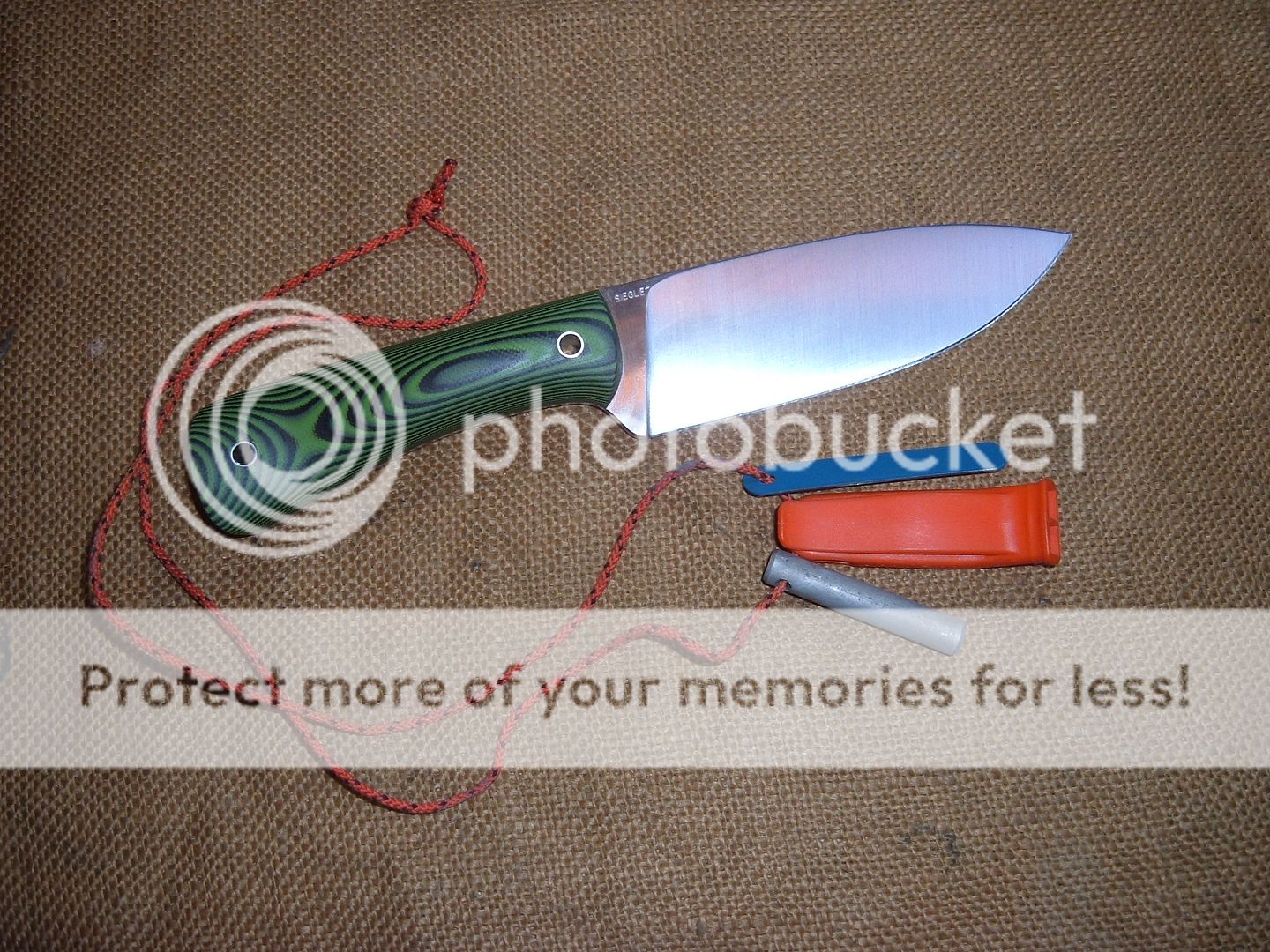 Overall it is 9 5/8inlong. The blade is 5 1/16in long tip to handle and 1 5/8in wide. Sheath is black Kydex with a Tek Lok. Price is $250 shipped in the US(Paypal or USPS MO).