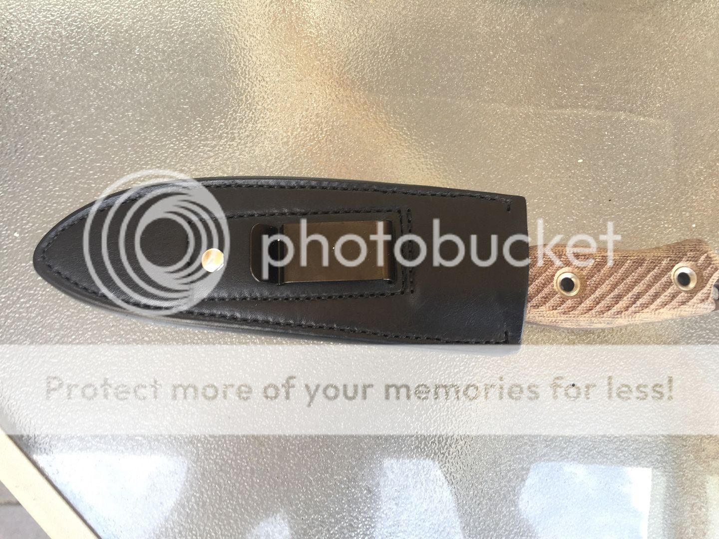 From his horse riding days he seems to like a high riding sheath, he's a lefty, I've tilted the clip slightly so it would be at slight angle to aid in taking out and re-sheathing.