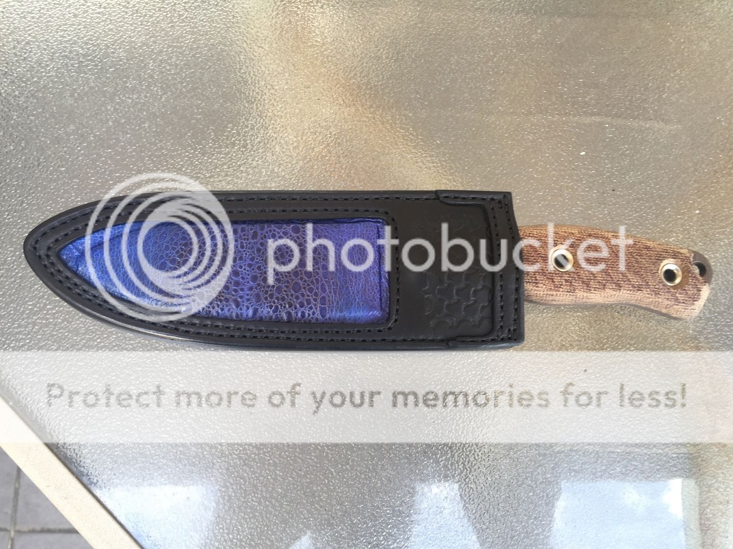 His knife has a blue/black G10 and black coated blade, so I went with black and a blue cane toad inlay.