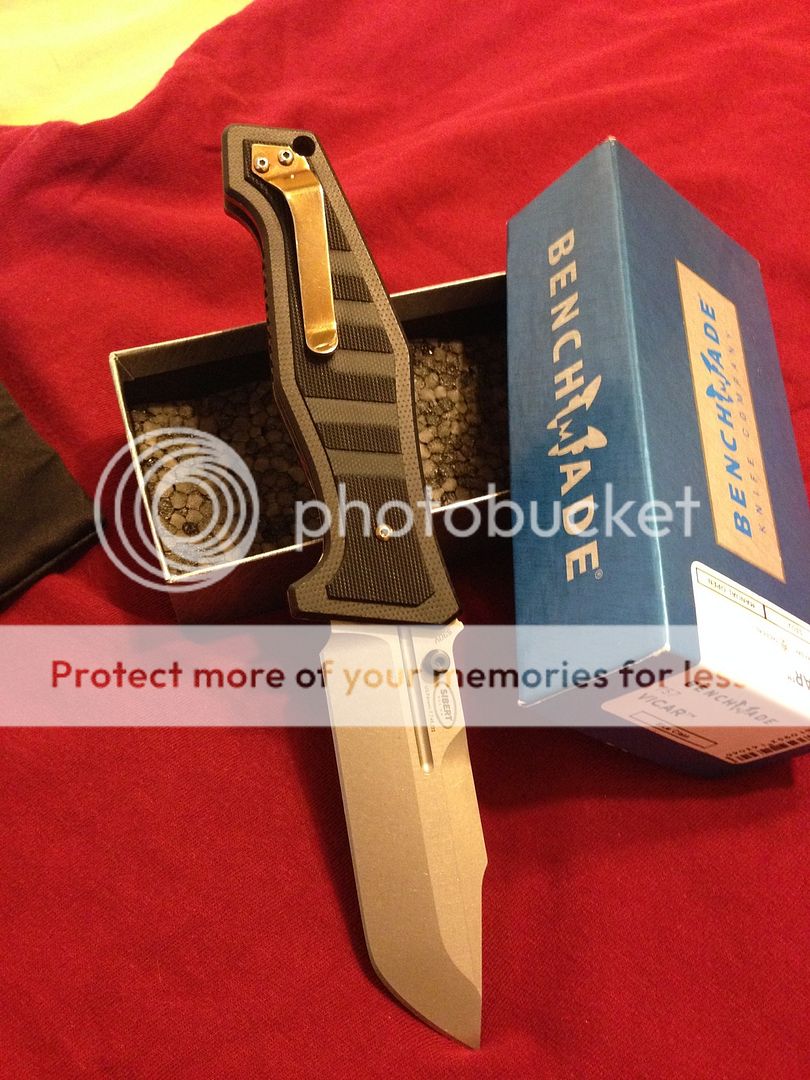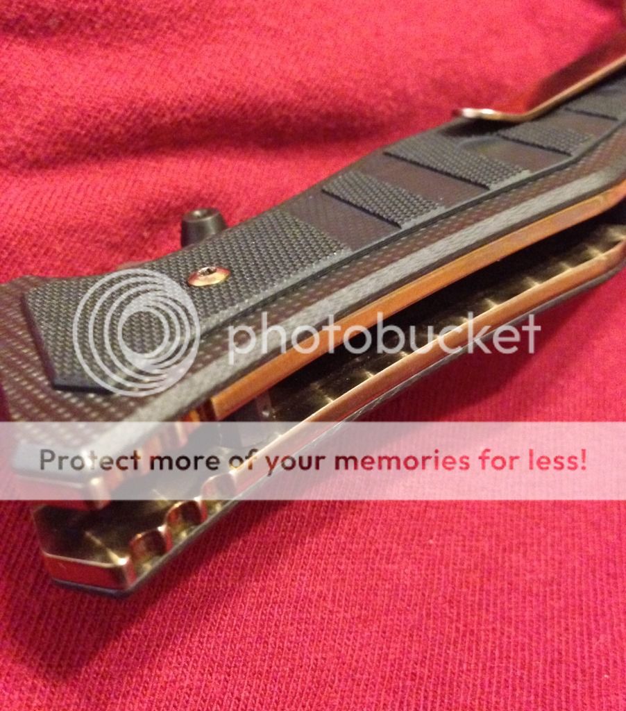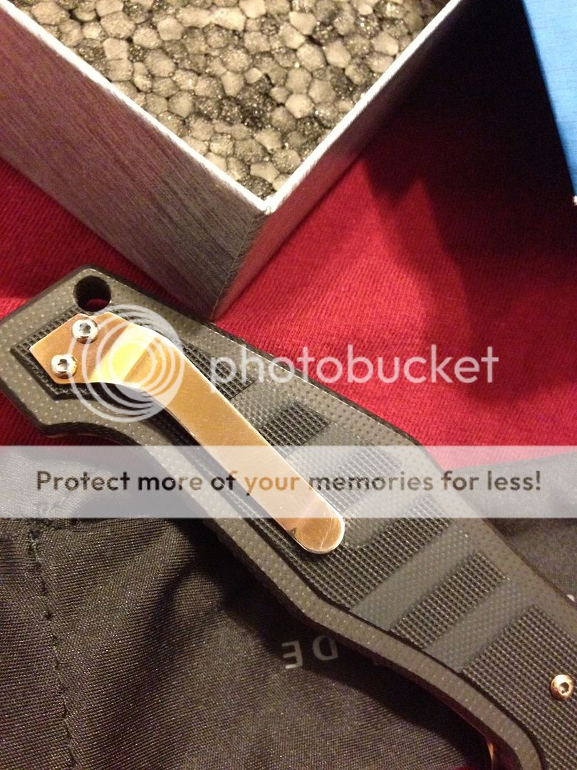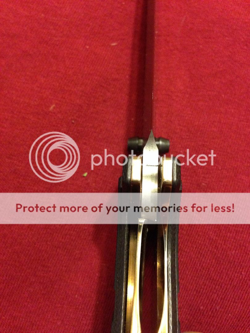 For sale (no trades please) is my lightly modified benchmade 757 vicar. It has had the original green g10 scales rit dyed black (looks great, better in person) and the titanium liners, pocket clip, and hardware polished.. The inside of the liners got a "jeweled" type swirl pattern (tried my best to picture) ..then everything was anodized gold. It shows very light signs of carry, as I carried it for around 3-4 days. Mostly on pocket clip, but again it's minor. Blade itself has been used very little on tape and a few envelopes, shows absolutely no wear and still has factory , sharp edge.