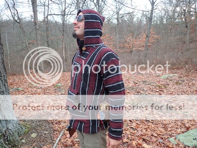 Mexican Poncho- I have used this well over a year in all types of cold. It is 100% Acrylic and has a hood and kangaroo pouch pocket. I only wore this over my base layer and never was cold. The hood helps seal in heat but cant be adjusted, so I still wear a beanie under it at night or in really cold weather. It is a little bulky and heavy, but it never goes in my pack because I wear it in cold weather as my main layer over the base layer. If it really gets cold, I can put on my fleece under it. It takes a pretty good sprinkle and light snow well, but isnt a shell. I like it!