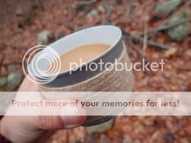 Van De Camp Sausages coffee cup. Super light aluminum, with jute twine wrapping.