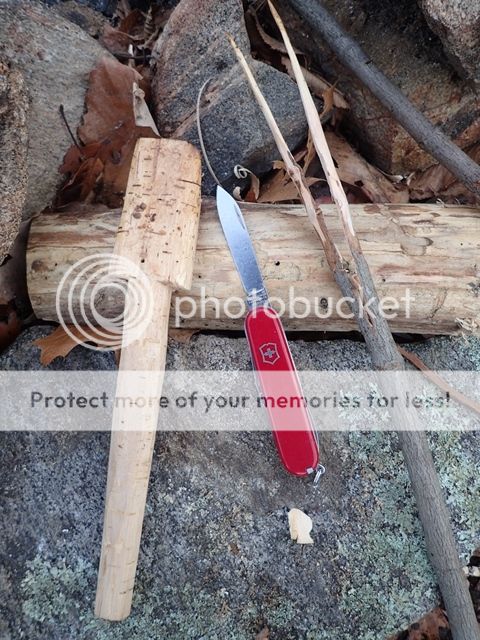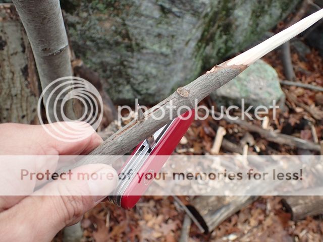 The awl on a SAK does a good job at splitting thin sticks in the center for making a forked stick.