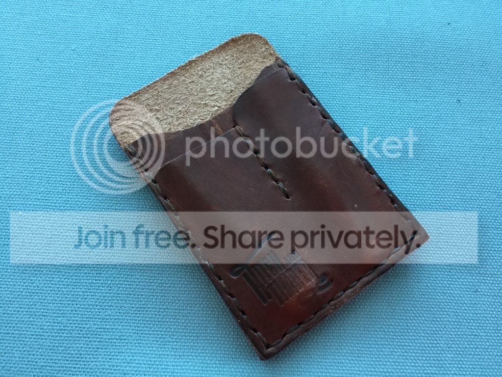 SOLD - Hitch and Timber EDC wallet - has spots for cash/cards as well as to pockets on the front for a small knife or flashlight and pen.Measures 4.25" x 2.35". Great EDC item, and I had a knife and pen in it sitting in a drawer, but it never made its way into my pocket. Asking $20.