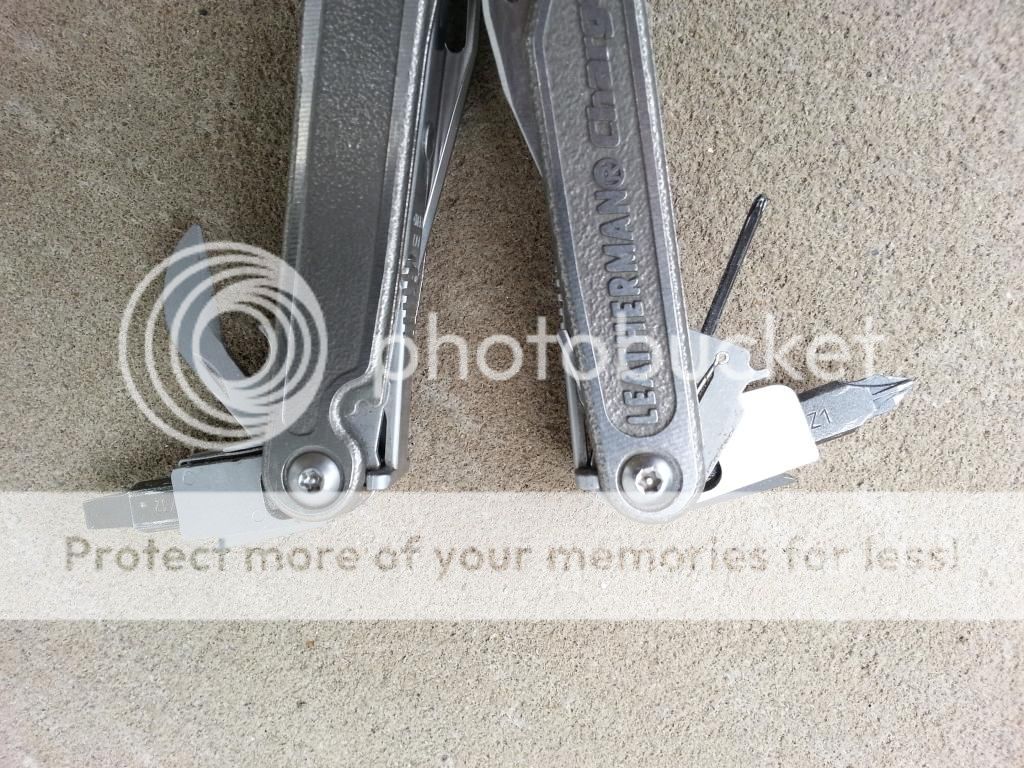 Good condition - some minor patina, scuffs, nicks, scratches but no rust issues and all tools are in good to great working order. The wire cutters recently got a little notch in them that causes some minor sticking while opening the pliers from a closed position. It has improved since it happened. Got some paint on the nylon sheath that should clean up well with some alcohol. Comes with extended driver, deluxe bit kit shown in pics and another smaller replacement bit kit not shown.