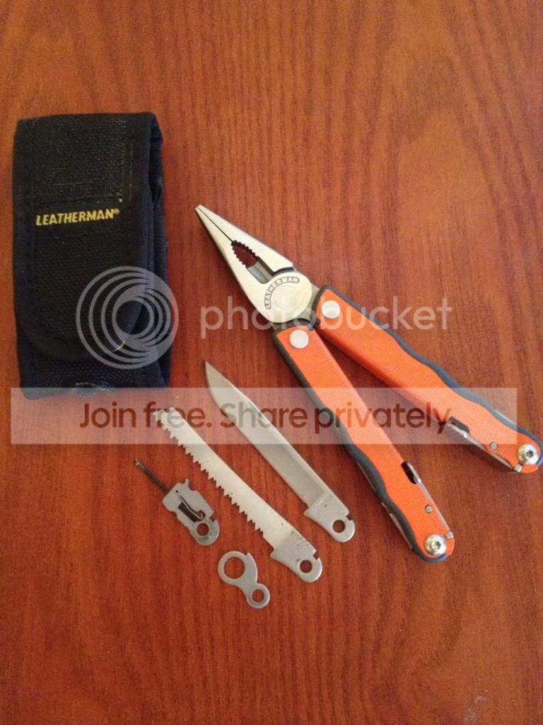 Ready for modification. New. Comes with nylon sheath. Extra knife blade, extra lanyard ring, additional sawblade and eyeglass driver bit. The implements side of the tool has been fitted with torx drivers binding posts for easy modification.