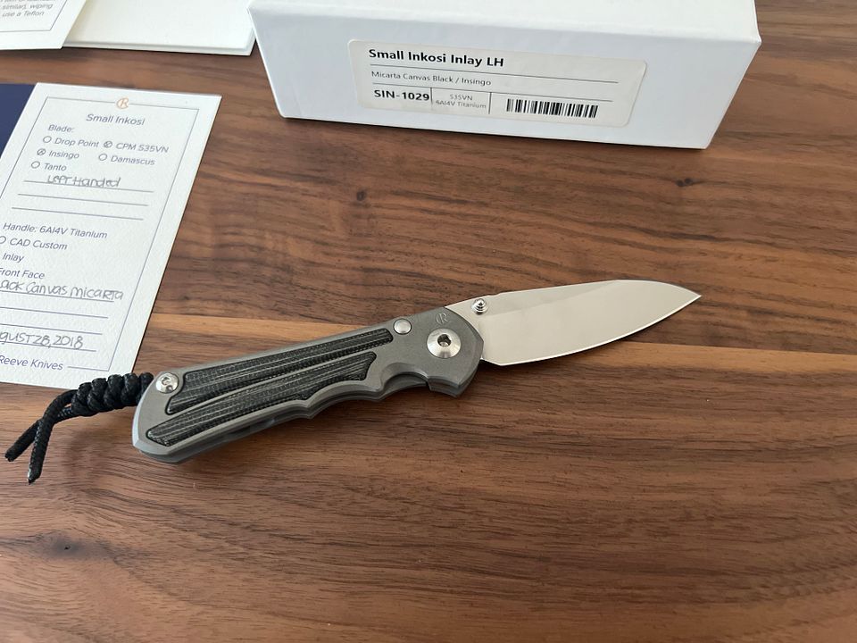 Selling a brand new CRK Left Hand Small Inkosi Black Canvas Micarta Inlay Insingo. This was purchased new directly from CRK and has never been carried or used. It is in BNIB condition. I purchased multiples of this knife and am just reducing my collection of duplicates. It comes with everything as new. Perfect lockup, centering, and action.