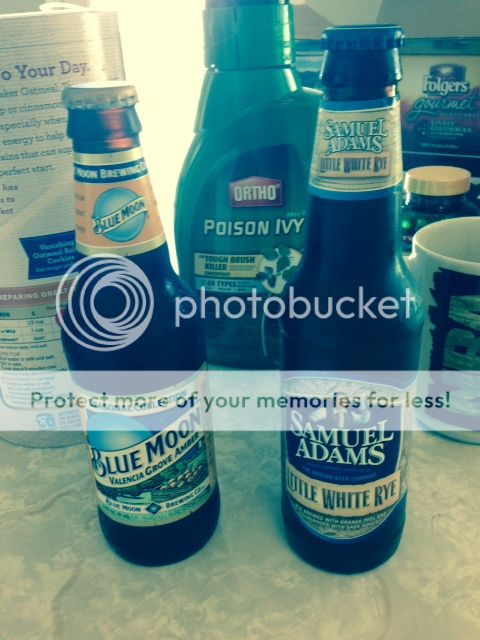 I chose the Blue Moon. And yes, that's a bottle of poison ivy and brush killer right next to the oatmeal...don't judge me. I thought it made a really "artsy" background, so I kept it there.