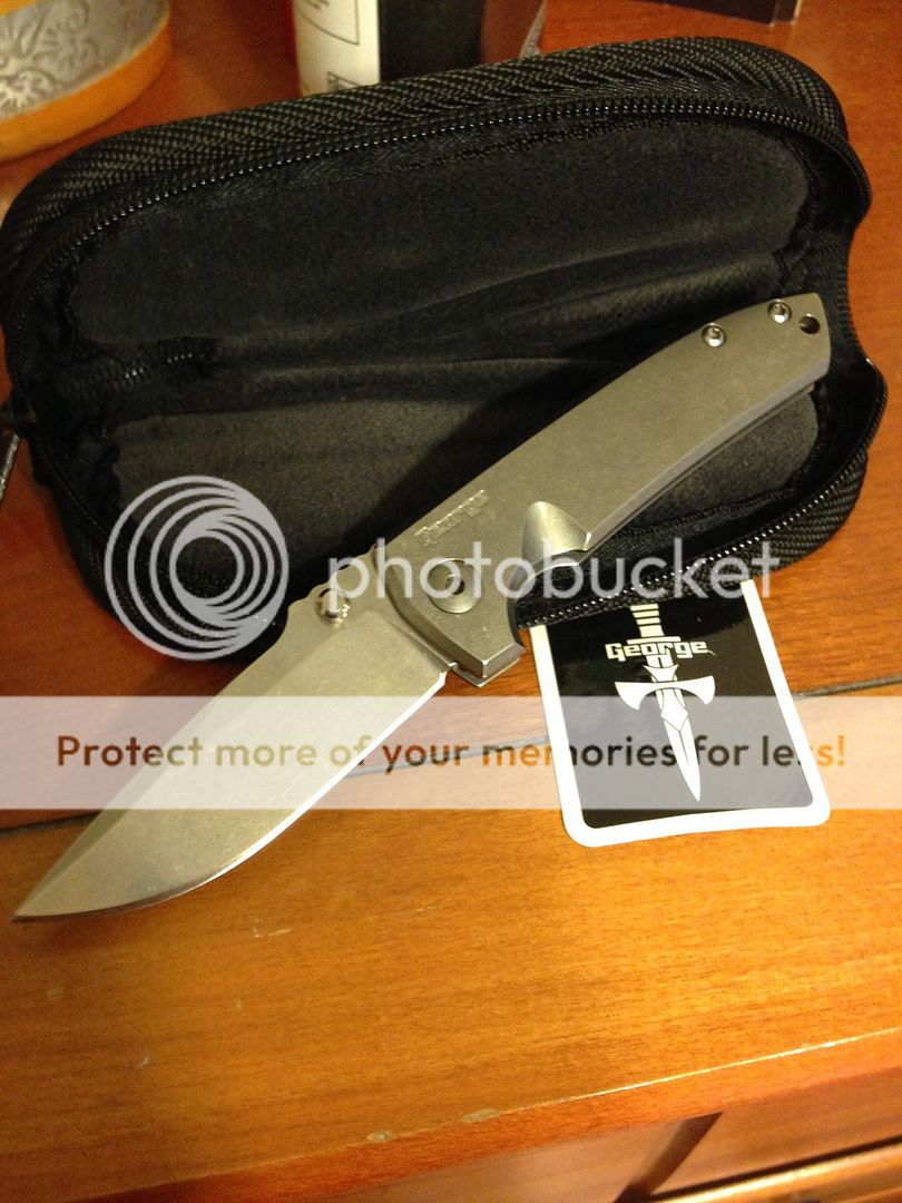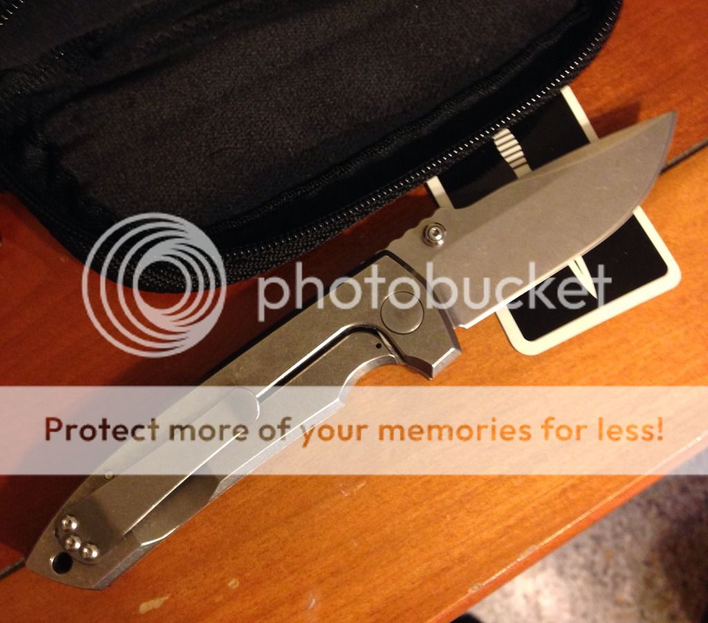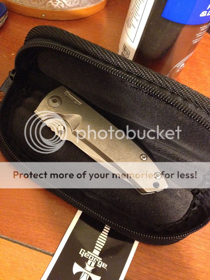 Les George VECP version 3. Has the milled groove for easier access to the thumb stud, sterile blade (beautiful stonewash) , bigger pivot, and geared backspacer. Very lightly carried, could pass as new except it was sharpened by previous owner... looks good, very sharp. Comes with knife pouch and sticker as pictured. Knife is perfectly centered, locks up solid in all directions, early lock up, and is CRAZY smooth!!! I love the action on this knife ! Easily spyderco flicked with middle finger. Love it. But I want the new protect/les George auto eagle so unfortunately she has to go :-(