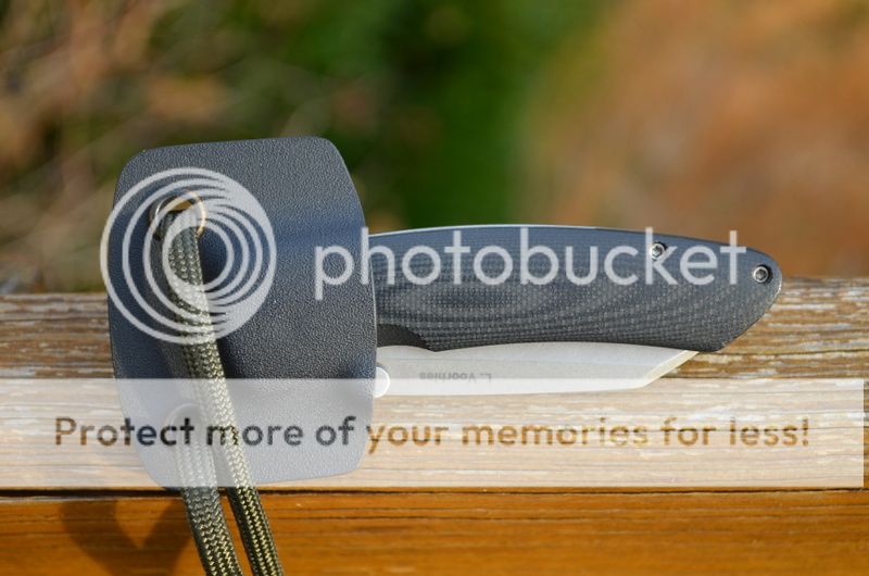 Les Voorhies Model 10 framelock. Carried and lightly used. 2 5/8 S35VN blade, 6 OAL. Black G10. Edge touched up on a strop. A few scratches on the Ti and Clip. Comes with Birth card and Kydex neck sheath.