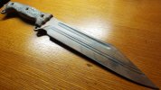 What it lacks in brute chopping power it more than makes up for in agility. THIS THING IS FAST! I don't have very accurate calipers but im pretty sure its distally tapered to the tip from about 8 inches or so up the blade. At a 14inch blade length and only ~24ounces, along with no holes in the "pommel" theoretically bringing the balance point back further, its THE best handling piece of Infi I've ever owned. The Moab has a similar "lighter than it looks" feel to it however the Moab ain't no 24ounces. I have a theory the Infi Ruck would give it a run for its money but I haven't gotten my hands on one of those...yet. Until then the Magnum Moask is the ultimate close quarters sword.