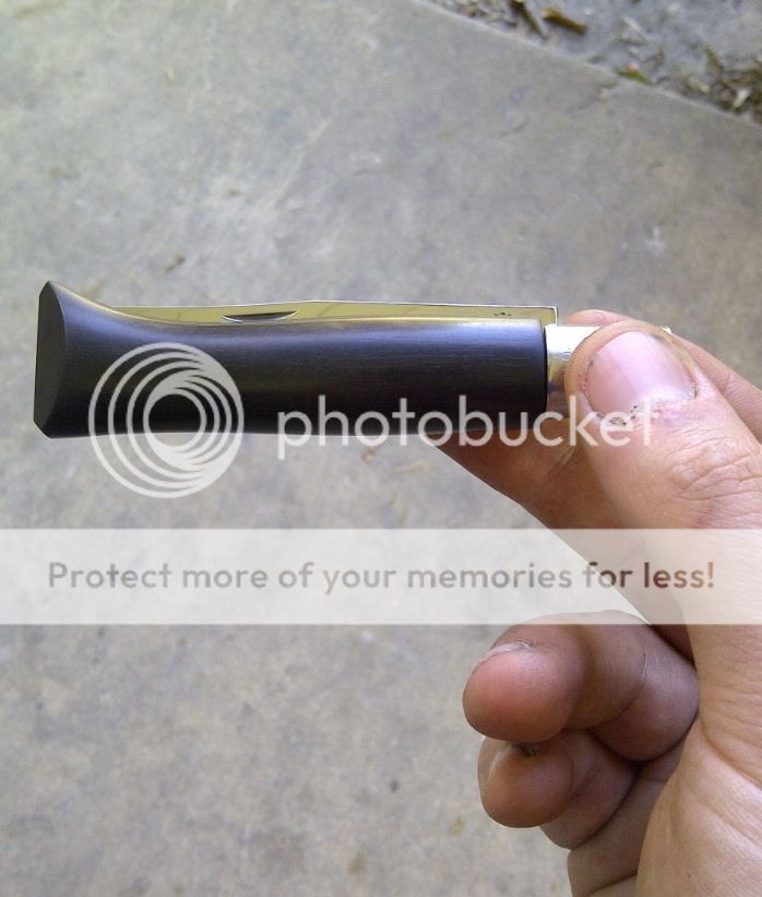 Modified my opinel, first one, go easy on me guys. Looks like crap but serves its purpose. Drilled a lanyard hole, removed material below the nail nick, softened the corners on the butt, removed the lock and carved my initials in it, upside down at that, haha.