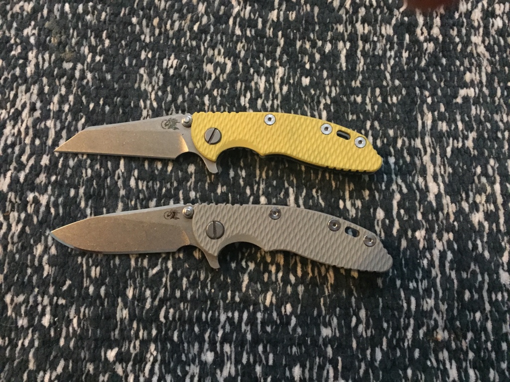 https://flic.kr/p/MzGeCr https://www.flickr.com/photos/57703464@N02/Looks awesome! Would you guys by chance anodized a titanium scale for a guy like me? I just bought a silver textured scale for my m390 and I thought it would be cool to get it 2 toned anodized...This is my own personal Half Track. I have probably anodized this knife 15 different time. It is so easy to take apart and re assemble it, which makes it a lot of fun to tinker with! I can not wait until they come out with accessories for these!