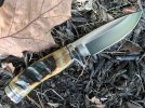 In last couple of months I have been experimenting with rescaling 110's and 112's with different kinds of wood. Lately I've used buffalo and elk horn. Staying with that theme, I ordered some ram horn off the bay. I know Buck offered it years ago in the custom shop but the search function here has turned up very few examples. Most pictures that were posted have been deleted over the years and even the google doesn't turn up much. I know ram wasn't as popular as stag but I have always appreciated well done ram horn on any knife (or revolver grips!) So while I wait for my order to be shipped to me from Alaska, I thought I would reach out to you all and see if I could get some inspiration. Surely there are a few of you out there that have knives with beautiful ram horn scales. I can't be the only one who likes that combination. Although it doesn't have to be a 110 or 112. It can be anything. Show me what you have!