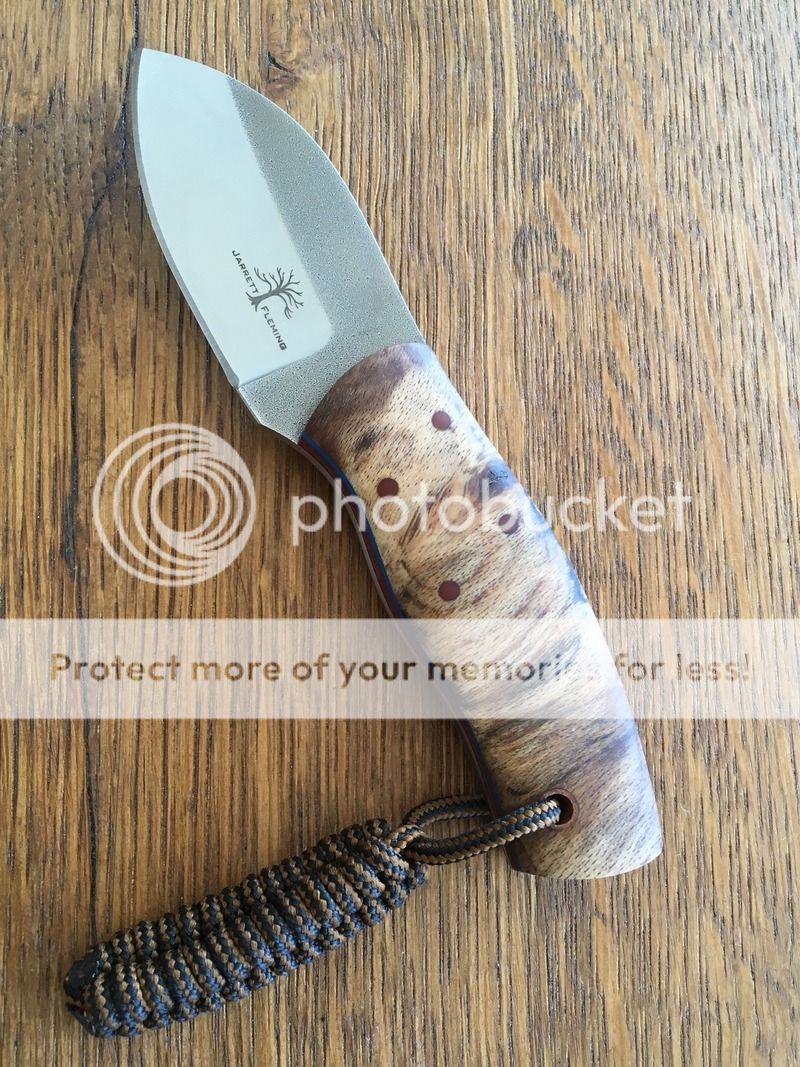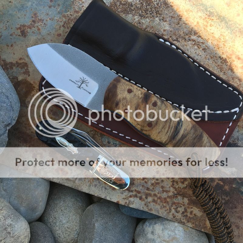 Two for the woods. The sheepsfoot looking one is a custom made back about 20 yrs ago by some guy getting started. It is 440C and is a very good cutter. The contouring on the handle is great, but it's ugly. I hope to restock it someday.