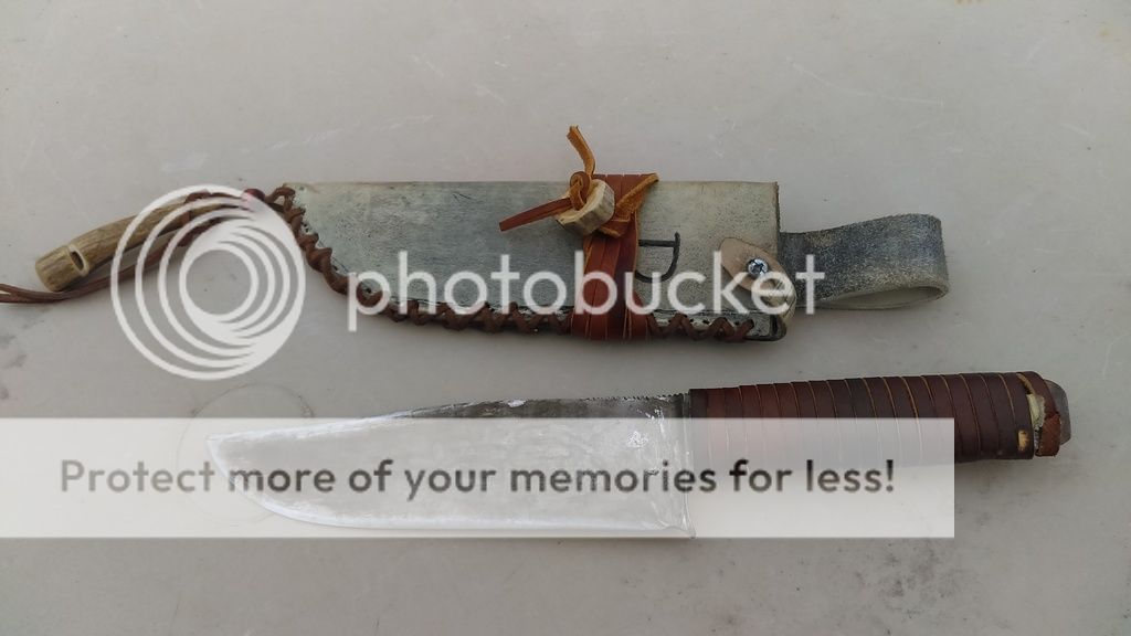Actually its a M-8 not a M-8A1 so it was only made during WW2. It was made for the M-3 Trench knife. They quit making the M-8 when the A1 (with belt hooks) came out.The sheath is a vietnam era bayonet sheath for the M16.![]()