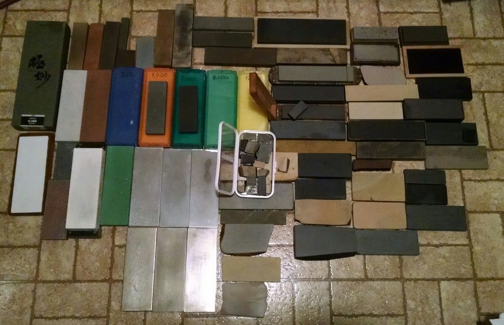 As for a list, there are Washitas, Arkansas, JNats, Silkstones, Thuringians/Eschers, Coticules, Shapton Pro, Suehiro, India and silicon carbide hones, Spyderco ceramics, Atoma and DMT plates, and plenty of others in that mix.