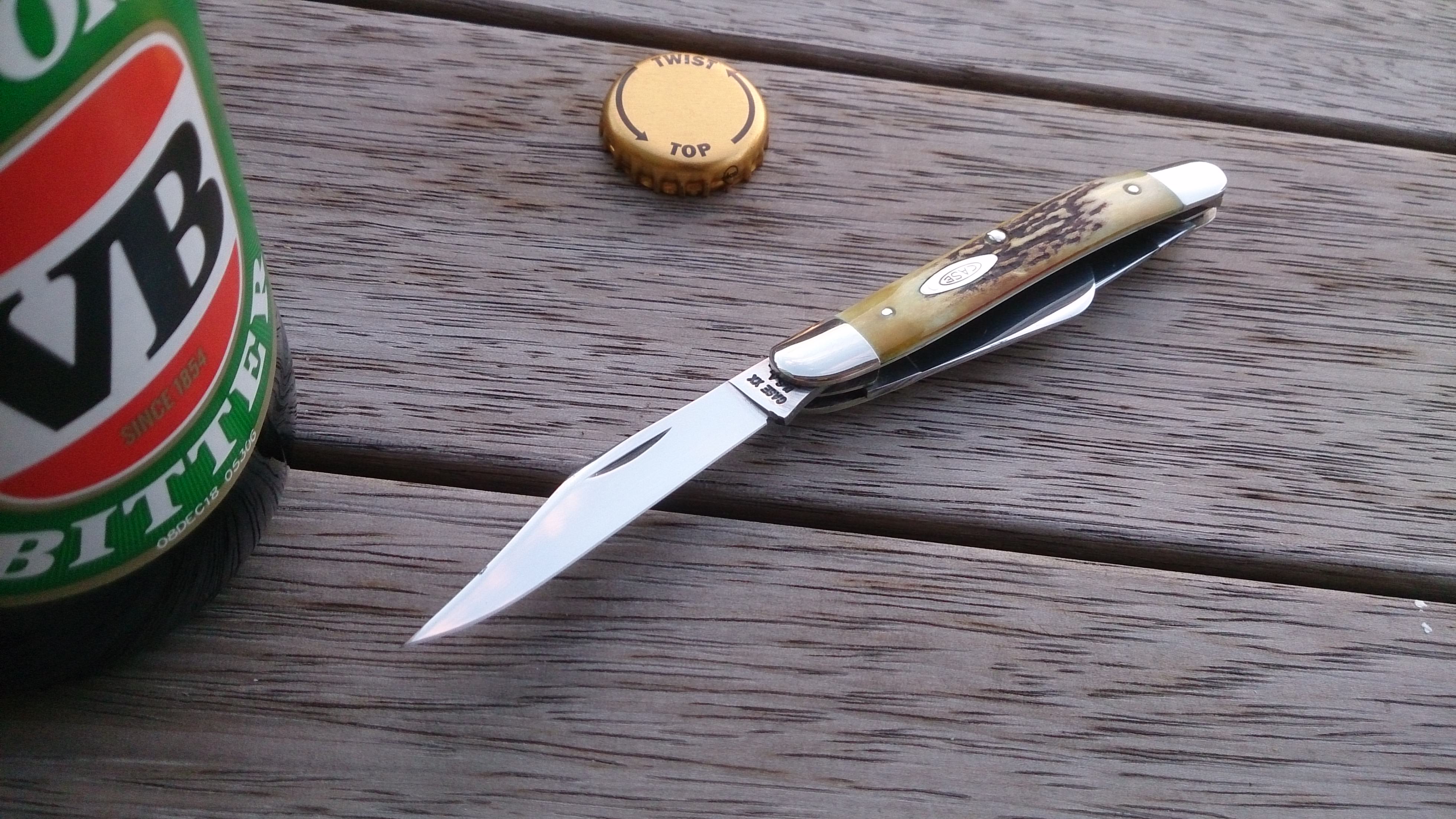 It's a well made knife. The blades all fit together well with no serious rubbing or crowding. It's also a two spring stockman, which I prefer over 3 spring. The secondary blades sit nice and low and don't impede ergonomics, and all three tips sit within the frame. The joints are well sunken and make for a nice feel in hand. The rounded bolsters also make it an easy and comfortable carry, and I find it fits in my watch pockets. The pulls are around a 5 on the secondaries and a 4 on the main, but they all have good snap and I'm happy with them. The bone is jigged in what I think is Case's corncob pattern, and I definitely wish it was smooth natural bone. It's on the smaller end of what I'd want in a stockman, but will be a useful little carry.