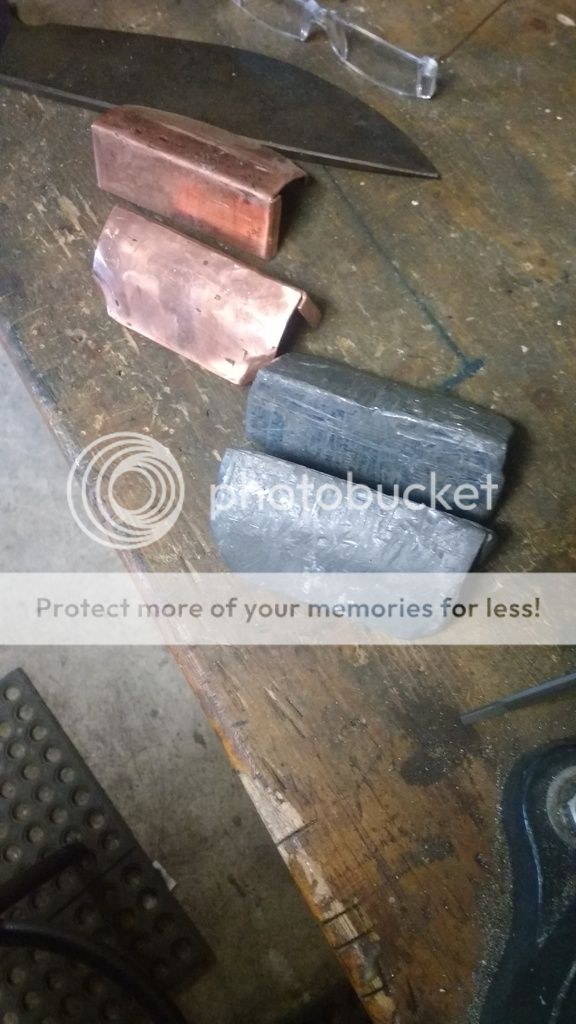 A few other things worth looking at are accessories to go with your vise. The first is soft jaws. You can either make solid aluminum, brass, copper, or micarta jaws, or make covers for them. I personally like solid copper jaws, but haven't had a chance to make them yet. For jaw covers I like having two sets around for each vise. One of copper, and one of 1/8" sheet lead. The lead jaws are especially nice for finished parts, as they will not mark anything.