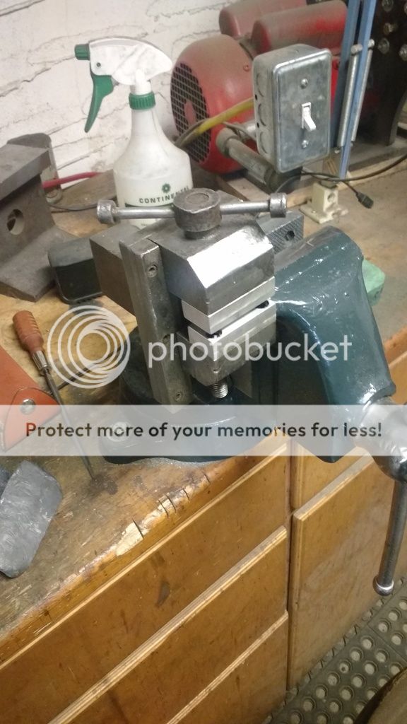 Now for the most useful vise (in my opinion) in a knife shop, the swivel jaw machinist vise. This one is a rock island, and happens to be a dual swivel (swivel jaw and base).