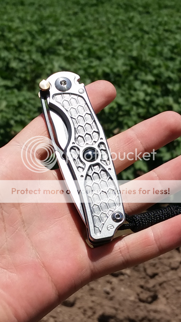 Second owner, acquired through trade. The knife has been used for light duties, (boxes, tape, envelopes, etc), smooth, solid lockup, blade favors presentation side but does not rub at all. Maintains factory edge, has never been sharpened. Does have snail trails from pocket carry as seen in the pictures. Trip to the spa would make it looking new again.
