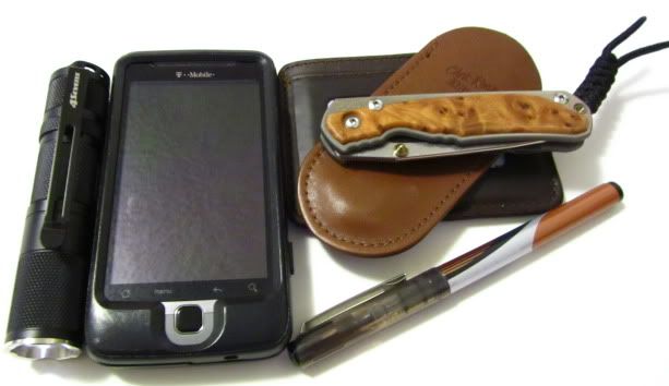 I got this one straight from James at Action Concepts. NIB, it has not been carried nor cut anything. Features a lovely V grind on it's stonewash finish blade and very grippy tan G-10 scales. Lock up is early with no play, although blade is slightly off center when closed.