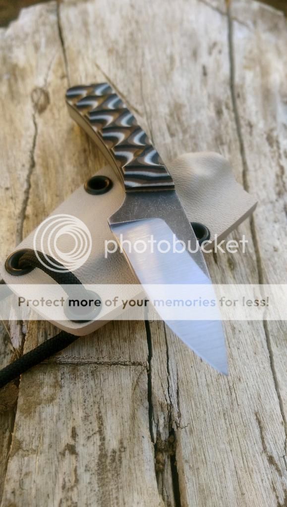 Comes with kydex sheath spaced for large tek lok (1.5 inch hole spacing) as well as neck carry