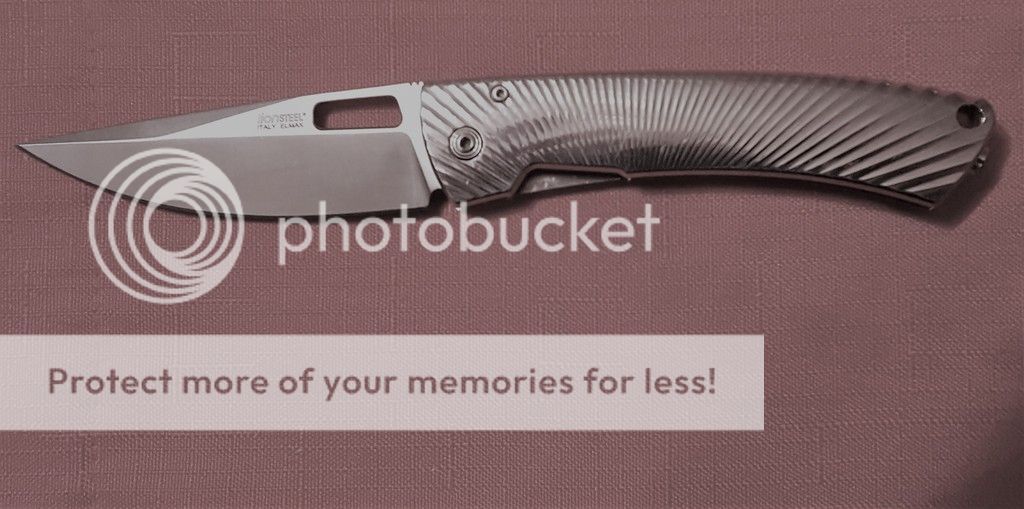 Lion Steel TiSpine with polished titanium finish. One piece titanium handle, frame lock.