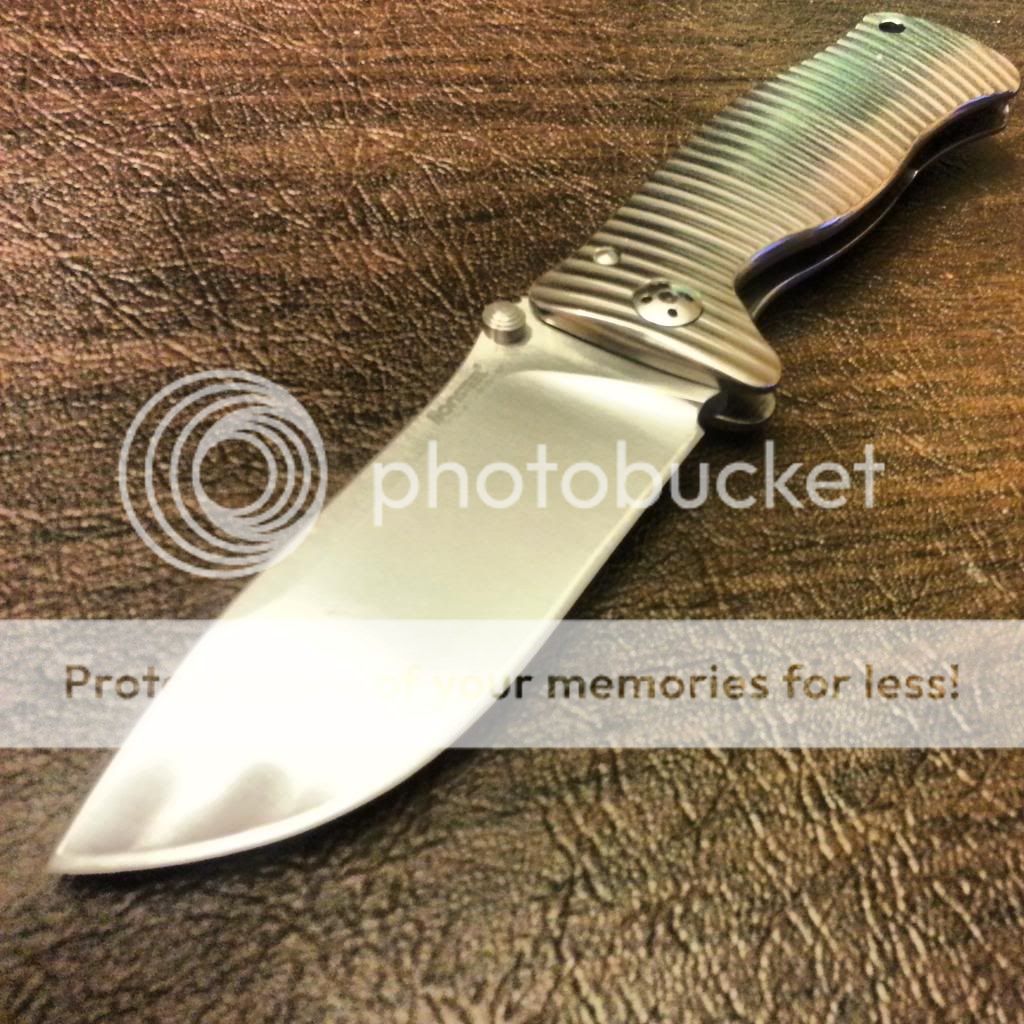 alright guys, needing to free up some funds, so I'm throwing this out on the block. Used Lionsteel SR1 with Ti handles. Handles are pristine, not a mark on them, they look perfect. Blade shows signs of use, this was a user blade, I bought it with the edge sharpened poorly, it has been fixed by me and scratches removed and sharpened to a razor sharp mirror edge. Rest of the blade has some small scratches that can't really be seen in a photo. Knife is in great shape, no blade play. Pricing it accordingly as a user knife - $OLD Shipped via PayPal gift or + 3.5 % for them fees. Thanks guys. I'll grab more photos later if it's still around.