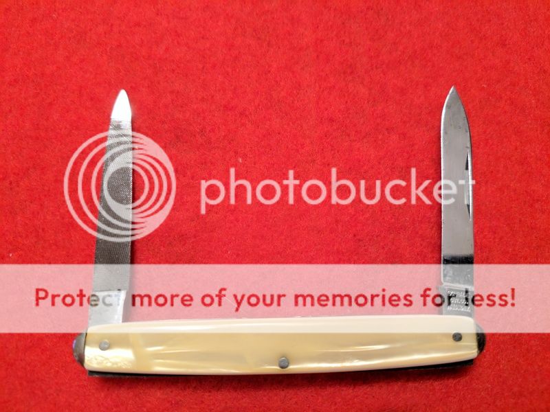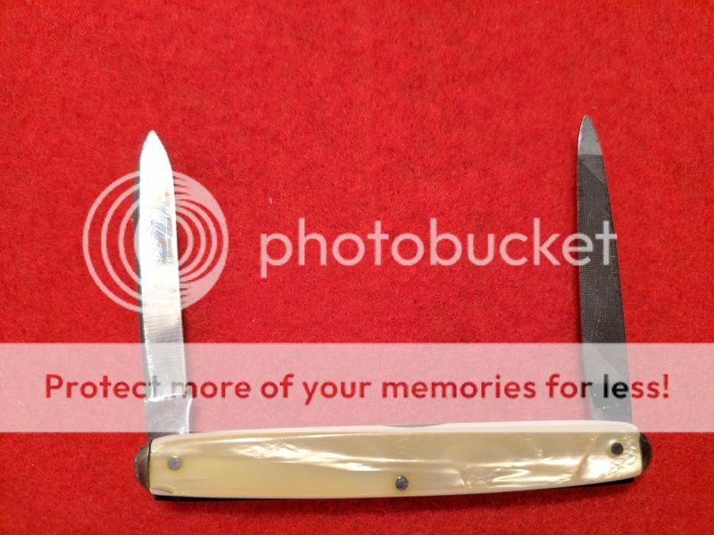 Schrader Cut Co pen knife in cracked ice celluloid. No signs of outgassing, looks to be a survivor as you can still see the crocus finish on the main. Secondary is a nail file. Both blades snal with authority, fantastic little knife considering its age. About 3.25 inches, I love the tip bolsters. $35 shipped USPS first class.
