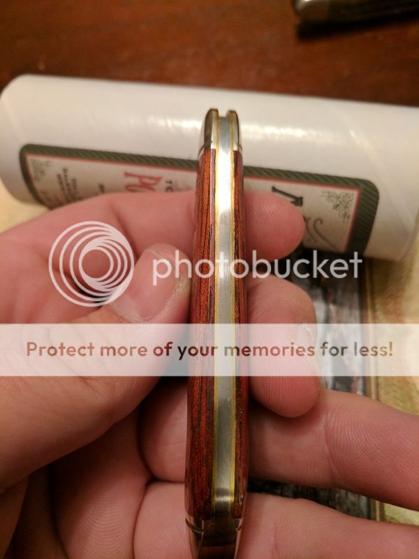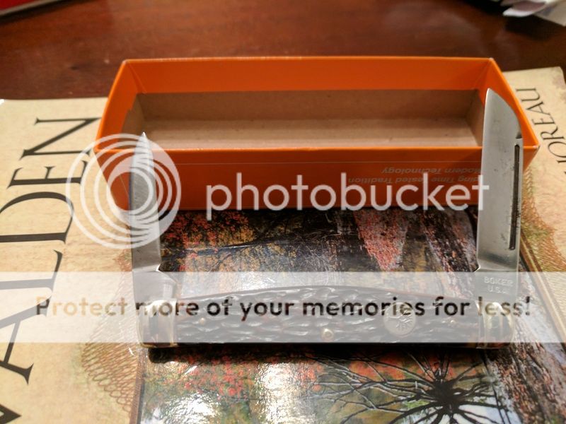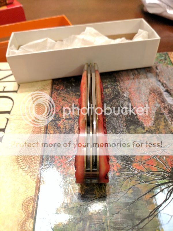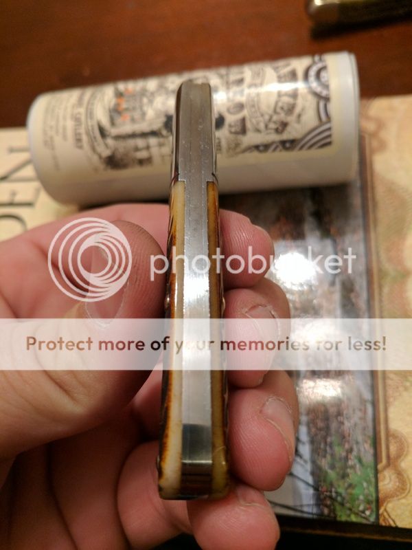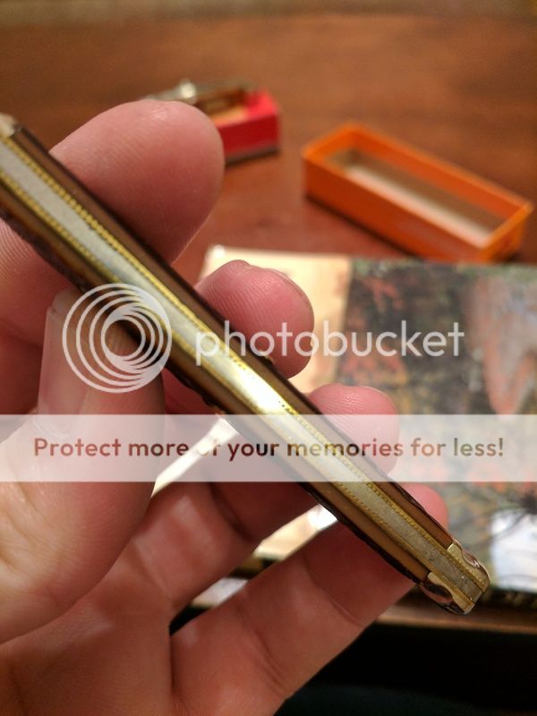 Boker half congress in jigged delrin. Liners are coined on the back side which is a real nice touch. Has been used and sharpened sometime in its life. About 3.5 inches, stainless steel I believe. $25 SOLD