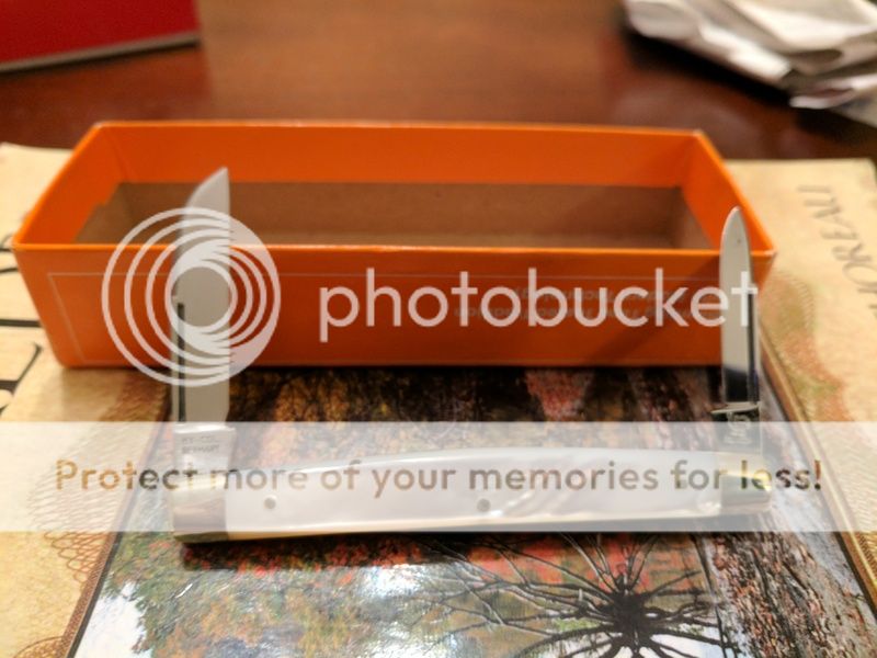 Hen and Rooster half congress in pearl and carbon steel. Absolutely flawless. I am starting to accumulate these old gems and can't keep them all. Bought this from AGR last year and he estimates 1950s production. About 3.5 inches $110 SOLD