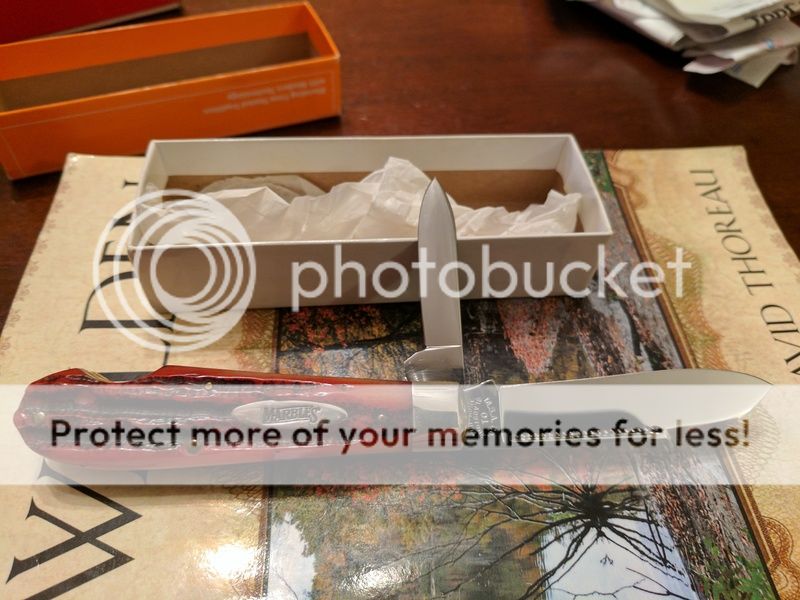 Marbles Easy open jack in jigged red bone. Matchstrike pull, carbon steel. Made in 2001. Beautiful knife. Comes with box About 3.75 inches. $110 SOLD