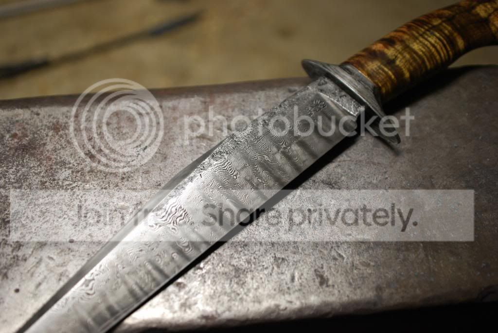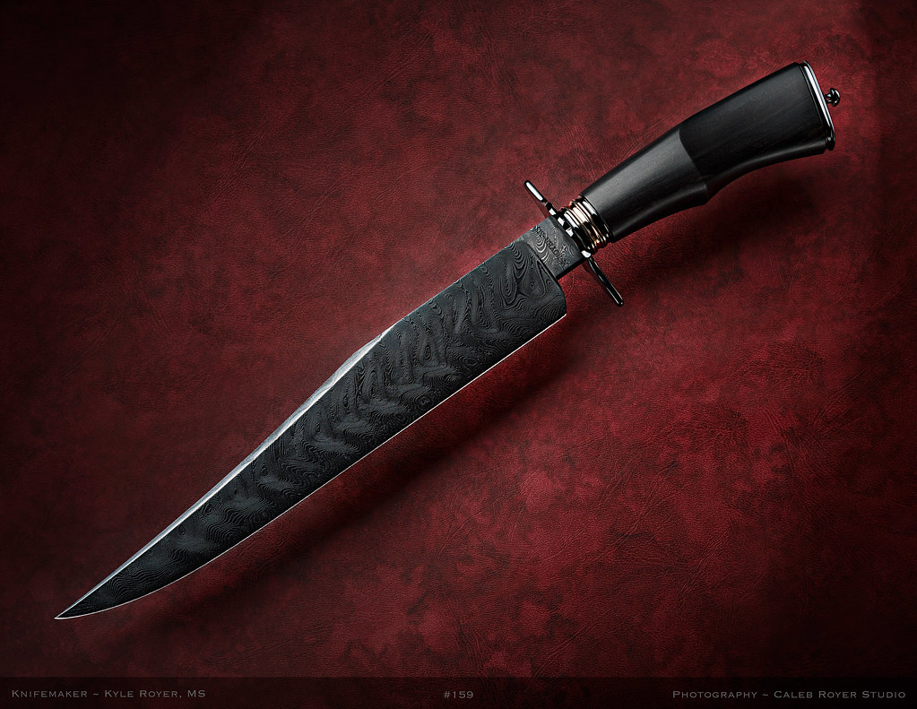 Here's one for the show. Just finished it up today. It's got a 10 inch blade, blued. Ebony with blued fittings and a bronze spacer. See many of you at the show!