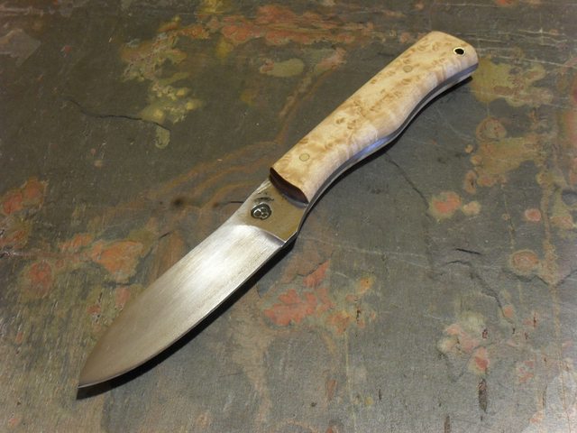 nighthaxan Feedback: +144 / =0 / -0 Joined Mar 21, 2013 Messages 1,436 Feb 20, 2014 #1 EDC Skinner made from 1/8" 1095 with a 3" blade and an OAL of 8"s. The handle scales are Birdseye Maple, asking SPF. Thanks for looking, Charles Last edited: Feb 23, 2014