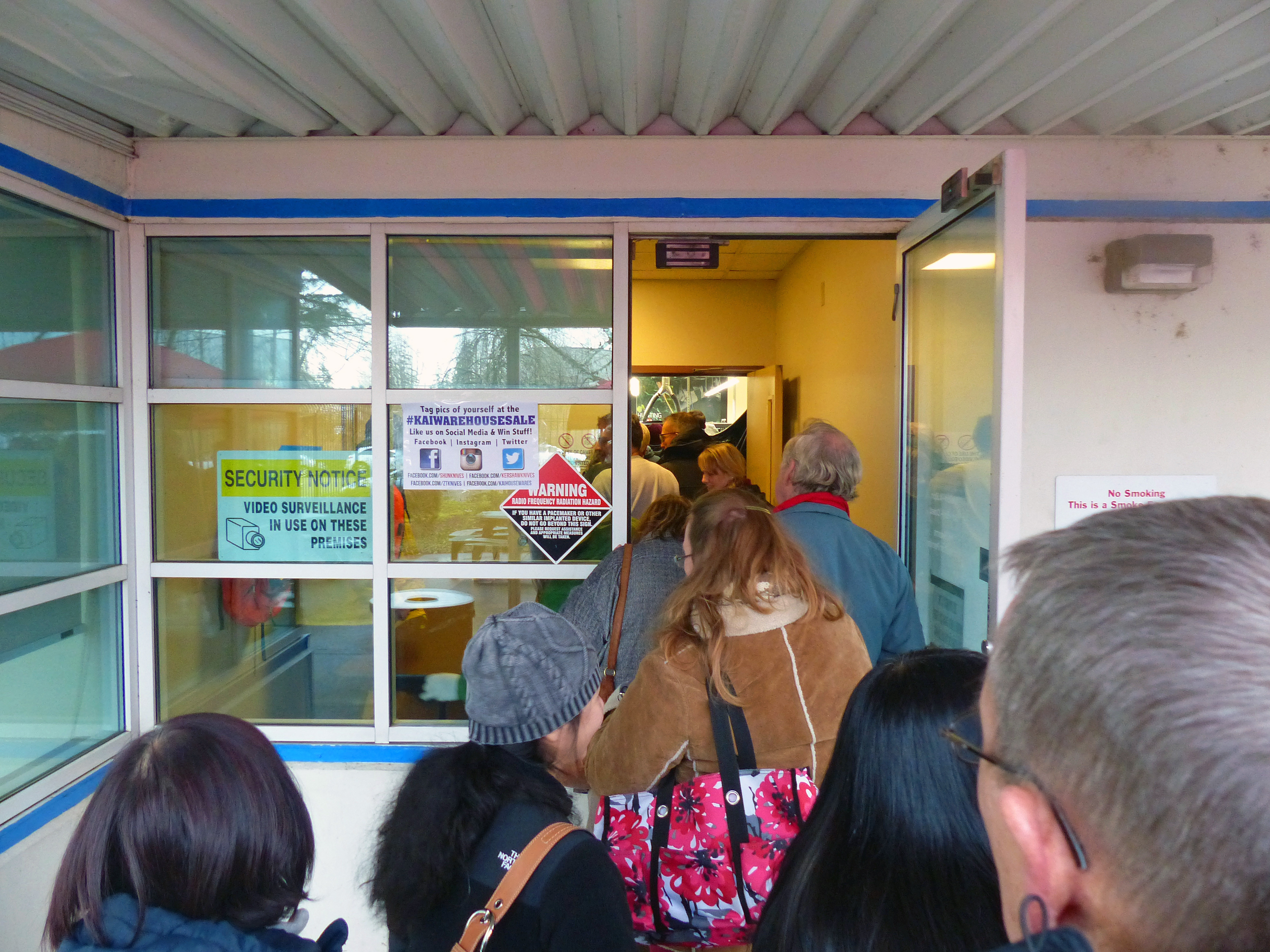 I thought some of you might like to share the experience of the annual Kershaw/ZT warehouse sale with my girlfriend and I. I love this time of year, Ive been going for the passed 5 years. Every time I walk away with some amazing deals and awesome experiences. This will be my girlfriends third year coming with me and she loves it just as much as I do. Shes been saving a bit of money every check for it like a vacation fund. It was funny, last night as we were going to bed she was all giddy and said she couldnt sleep and that it felt like christmas. We got here at about 4:30 and there were already probably a good 50-60 people in front of us. At this point the line is getting pretty long and is about a city block long all together. The doors open at 9 so a few more hours and we should be getting real close! Anybody else here? Pictures to follow, my photobucket is hassling me this morning for some reason.