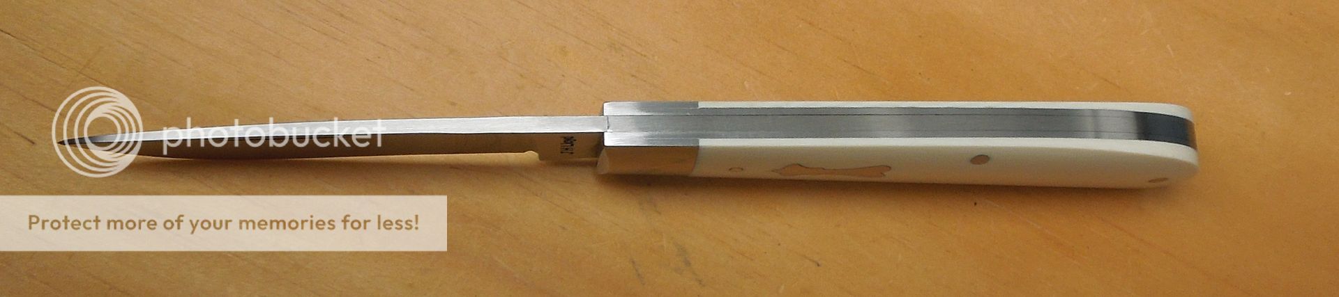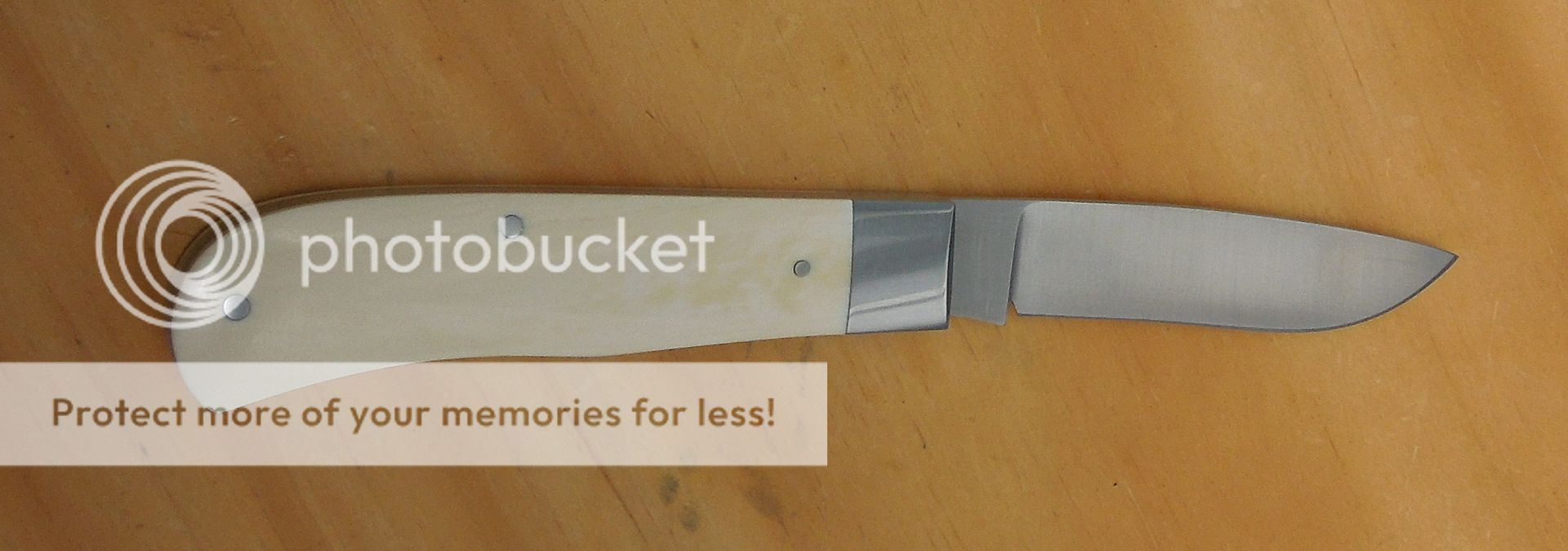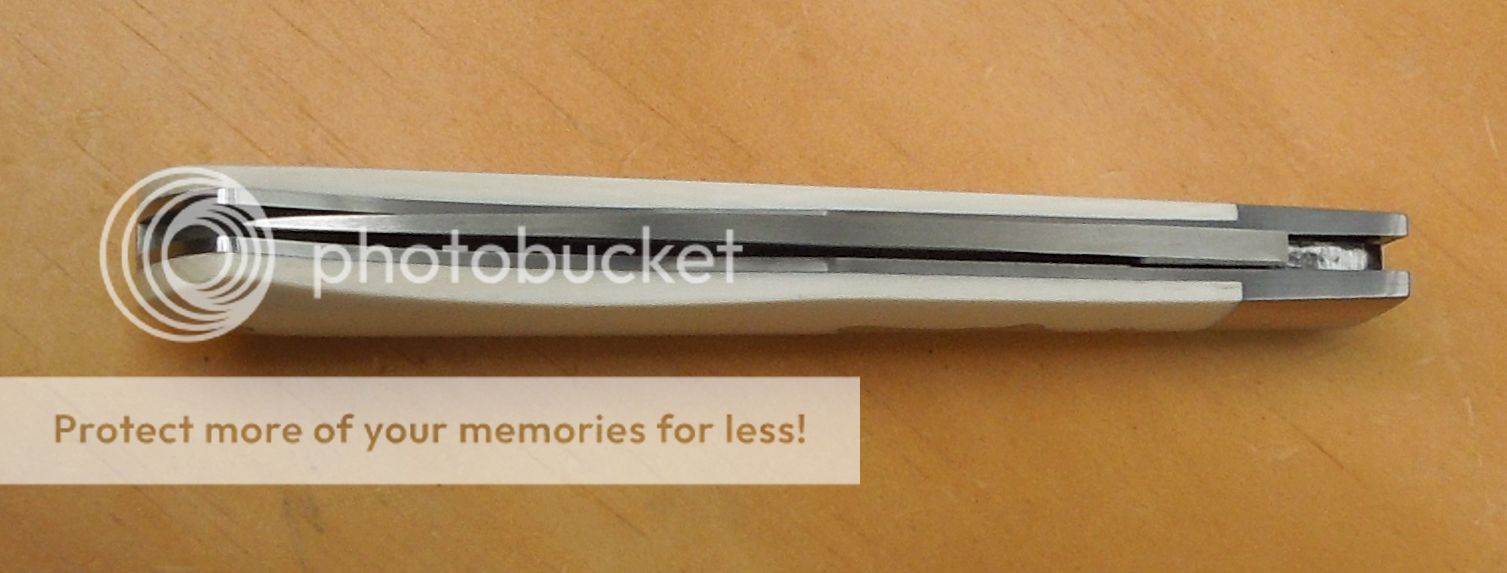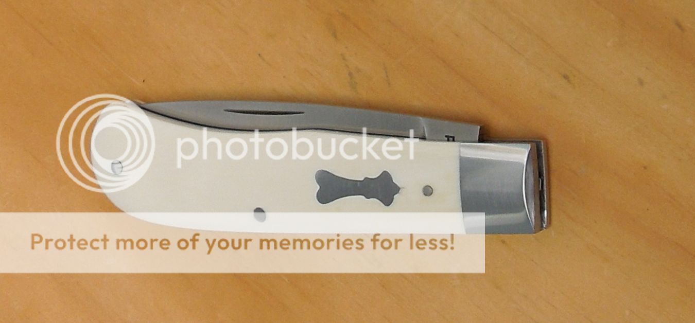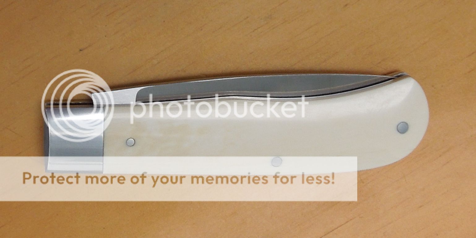 Opened up it measures 6-3/4" Blade is 3" with 2-3/4" of cutting edge.Walk 'n' talk,fit & finish are superb. Very snappy,smooth & firm. I'll call it a 6 pull. Blade centers closed & spring is flush in all half stop positions.Nice thin knife. Custom handmade slipjoint folder hafted in elephant ivory, affordable enough to EDC it.