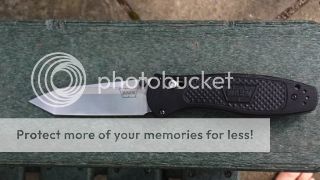 Description: This is an interesting version of the Benchmade Barrage, which has been discontinued. It varies from the standard Barrage because of its milled g10 handles as opposed to the standard plastic handles and a D2 blade instead of a 154-cm blade. I recieved this specific knife in a trade, and it was described by the previous owner as having only been carried a few times. The knife seems to be in pretty much perfect shape, except there are a couple of very faint scratches near where the grind transitons from the main edge to the tanto portion of the blade. Other than that the handles are in very good condition as is the pocket clip, which shows some wear as is common with this finish. Comes with all packaging.