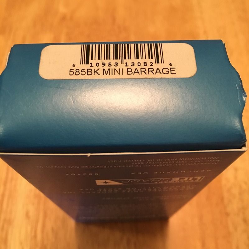 585BK Mini Barrage LNIB not a mark on it anywhere , never cut a thing , Factory razor sharp edge with nice fast action and rock solid lock up . Could be sold NIB but it's been carried maybe twice around the house in pocket so I'm going to say LNIB but could be sold as NIB .