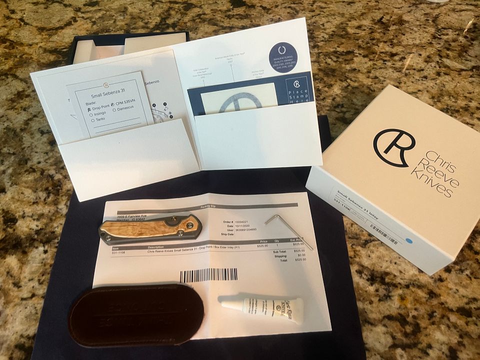 Up for sale is a small box elder Sebenza 31. Everything is included, including the original receipt from when I bought it directly from CRK.