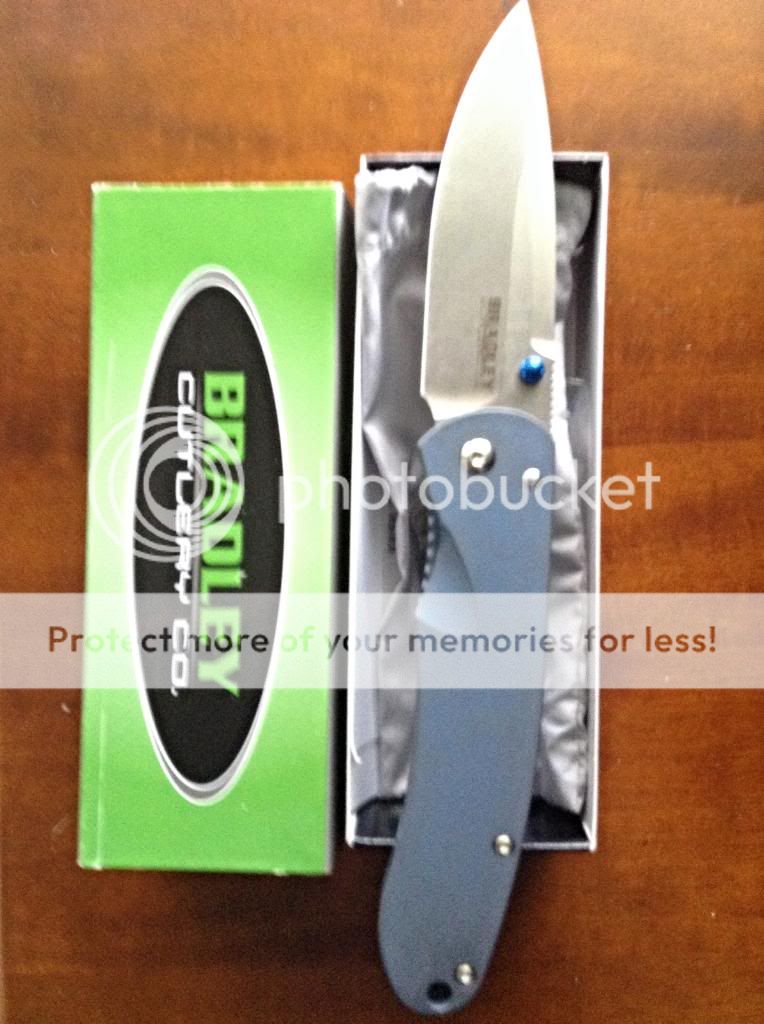 LNIB: Bradley ALIAS 1 BLUE ANODIZED, DROP POINT PLAIN BLADE, STONE WASHED, S30V